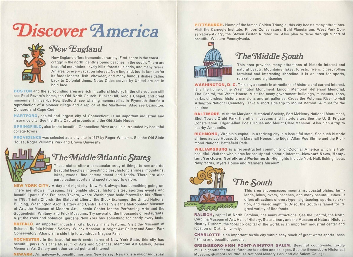 Opens to 36" x 21". On one side is a US map with the United routes overlaid. Also on this side is information on The LAnd Beneath Us, about pressure, water, ice, wind, sounds of an airplane flight and a knots to mph converter. On the other side is information on all of the cities United flew to with distances. With Points of Historical Interest, National Parks, Industry, Longest Rivers, Highest Mountains and much more. And a map of the Hawaiian Islands and United Routes. Dated 1967