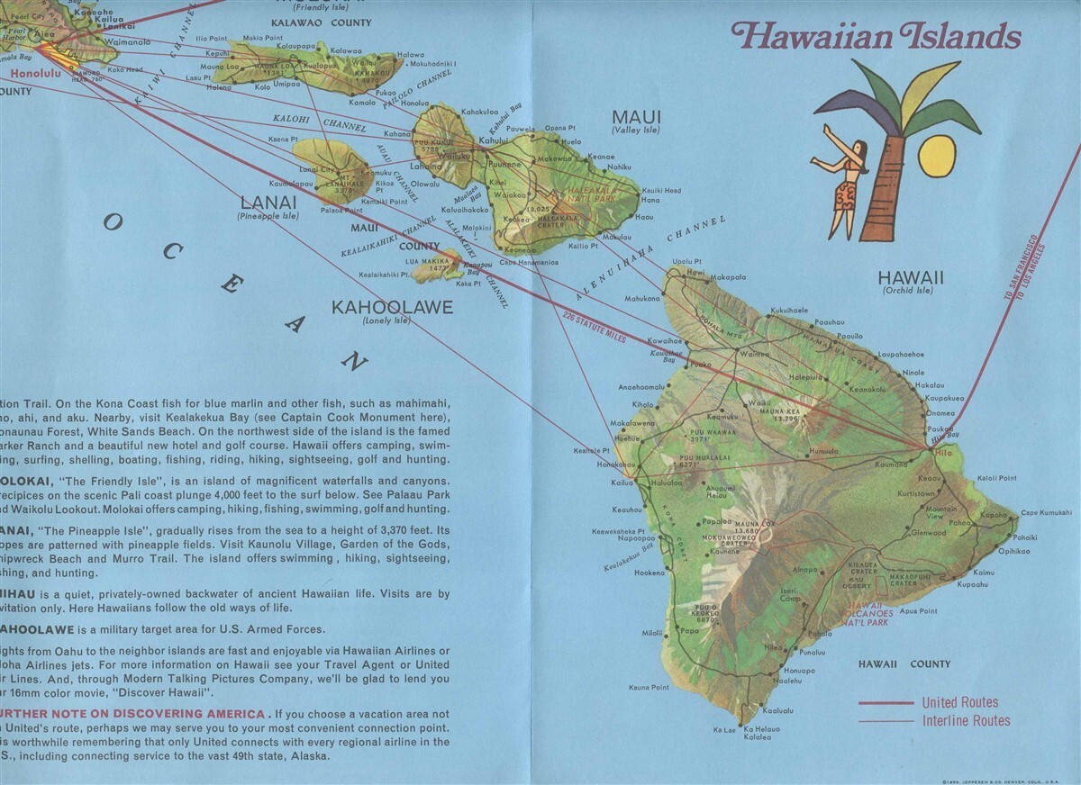 United Airlines Air Atlas 1967 UAL United States Hawaii Route Maps