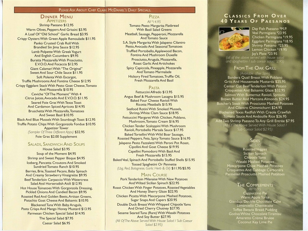 Ristorante Paesanos Dinner Menu Paesanos Parkway San Antonio Texas