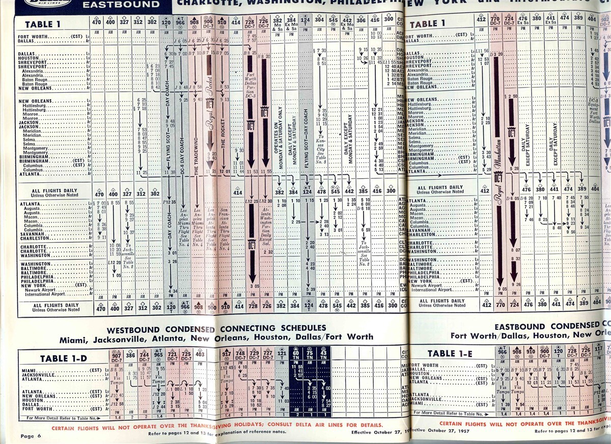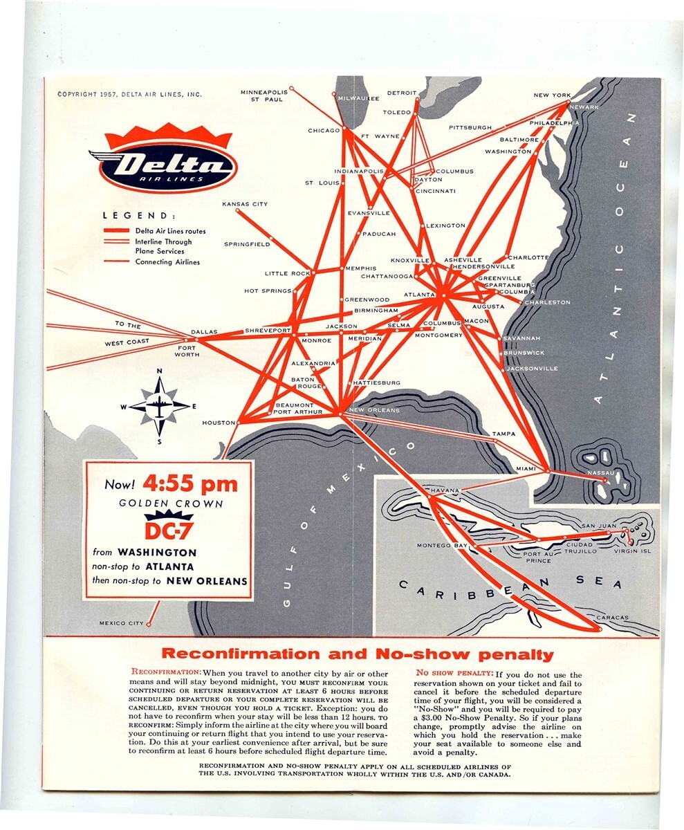 A 20 page time table with route map. Delta Air Lines Time Table October , effective October 27, 1957. With DC-7 Golden Crown Service