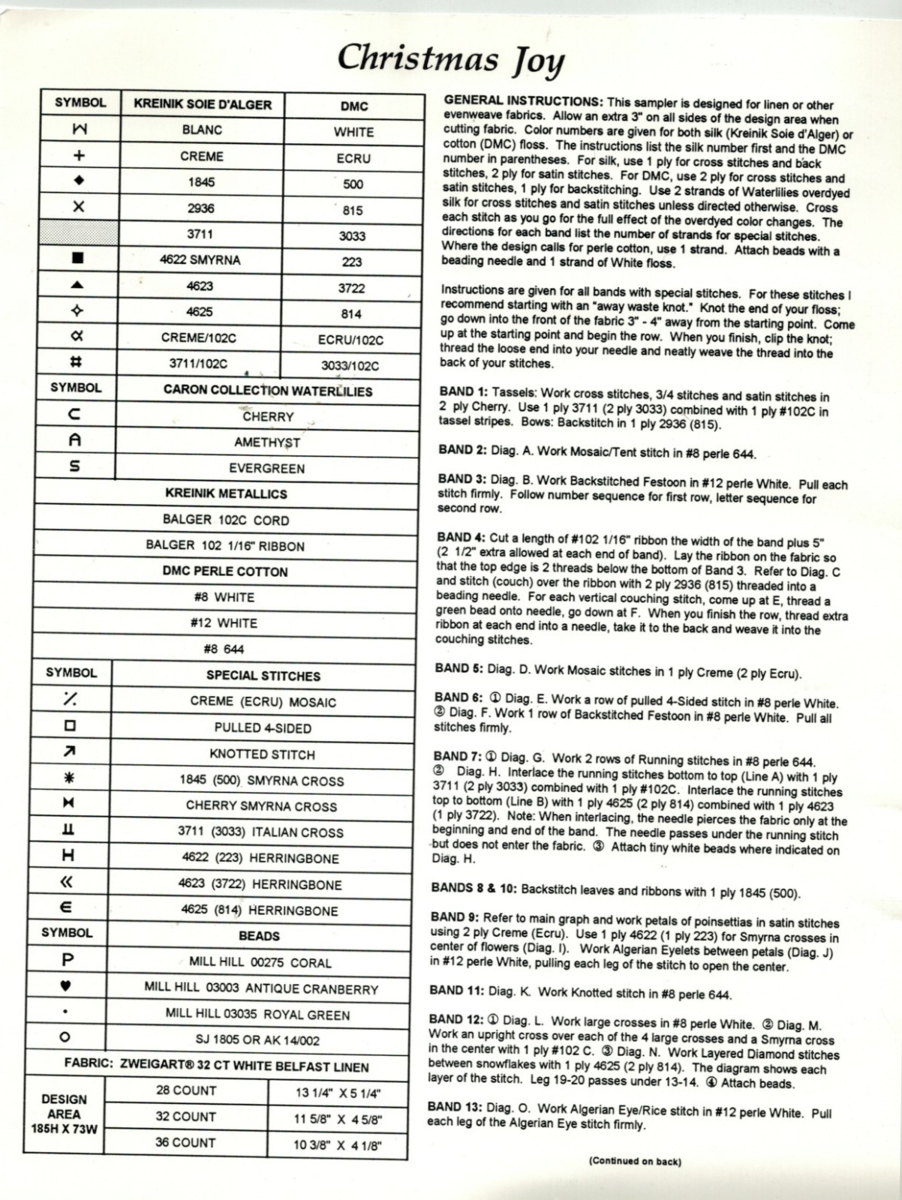 Chart with Material List and Instructions Only - No Thread, Linen or Embellisments
