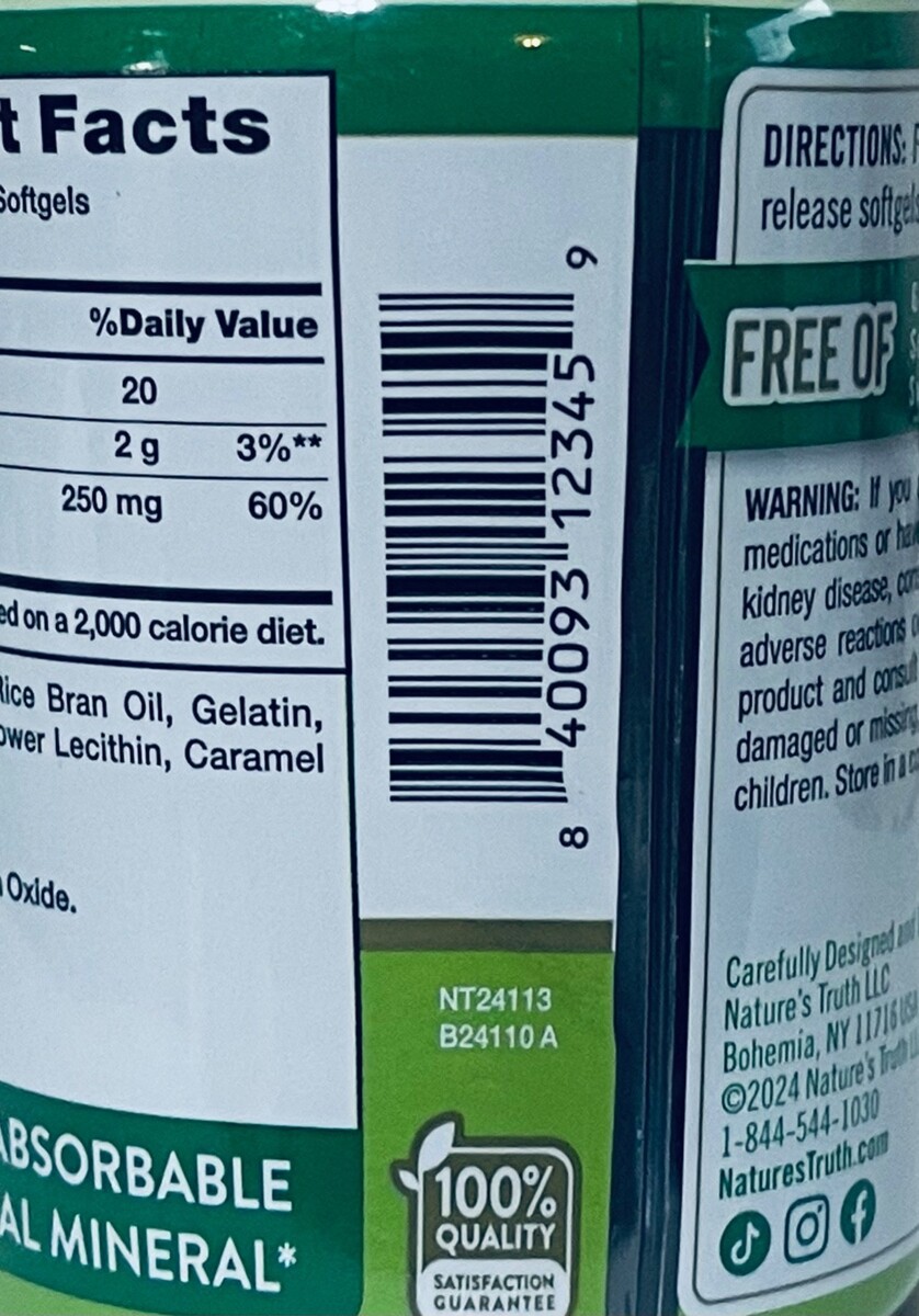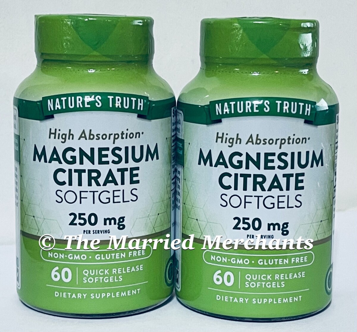 Nature's Truth High Absorption Magnesium Citrate 250mg Dietary Supplement - (2) bottles of 60 softgels each.
