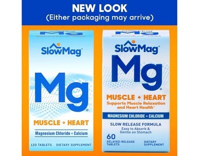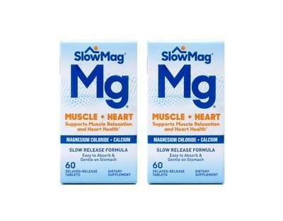 2x SlowMag Mg Muscle + Heart, Magnesium Chloride + Calcium, 60 Count (Pack of 2)