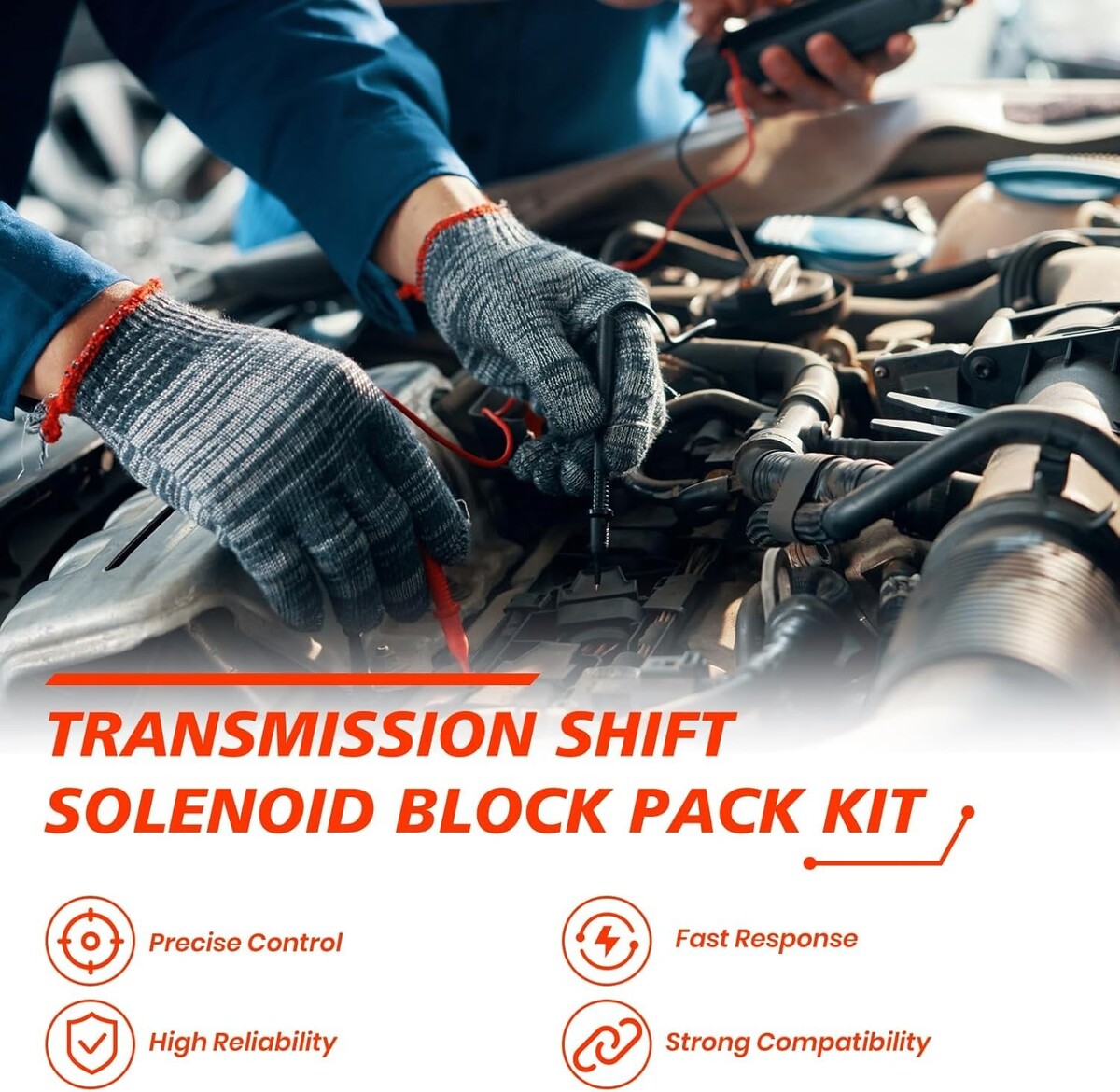 ?Precise Shift Control?Our Transmission Shift Solenoid Block Pack Kit can accurately control the flow direction and pressure regulation of transmission fluid. Under the commands of the Transmission Control Unit (TCU), it swiftly and precisely switches the oil circuit, ensuring smooth and seamless gear shifting. This effectively reduces shift shocks, enhancing both driving comfort and handling performance.