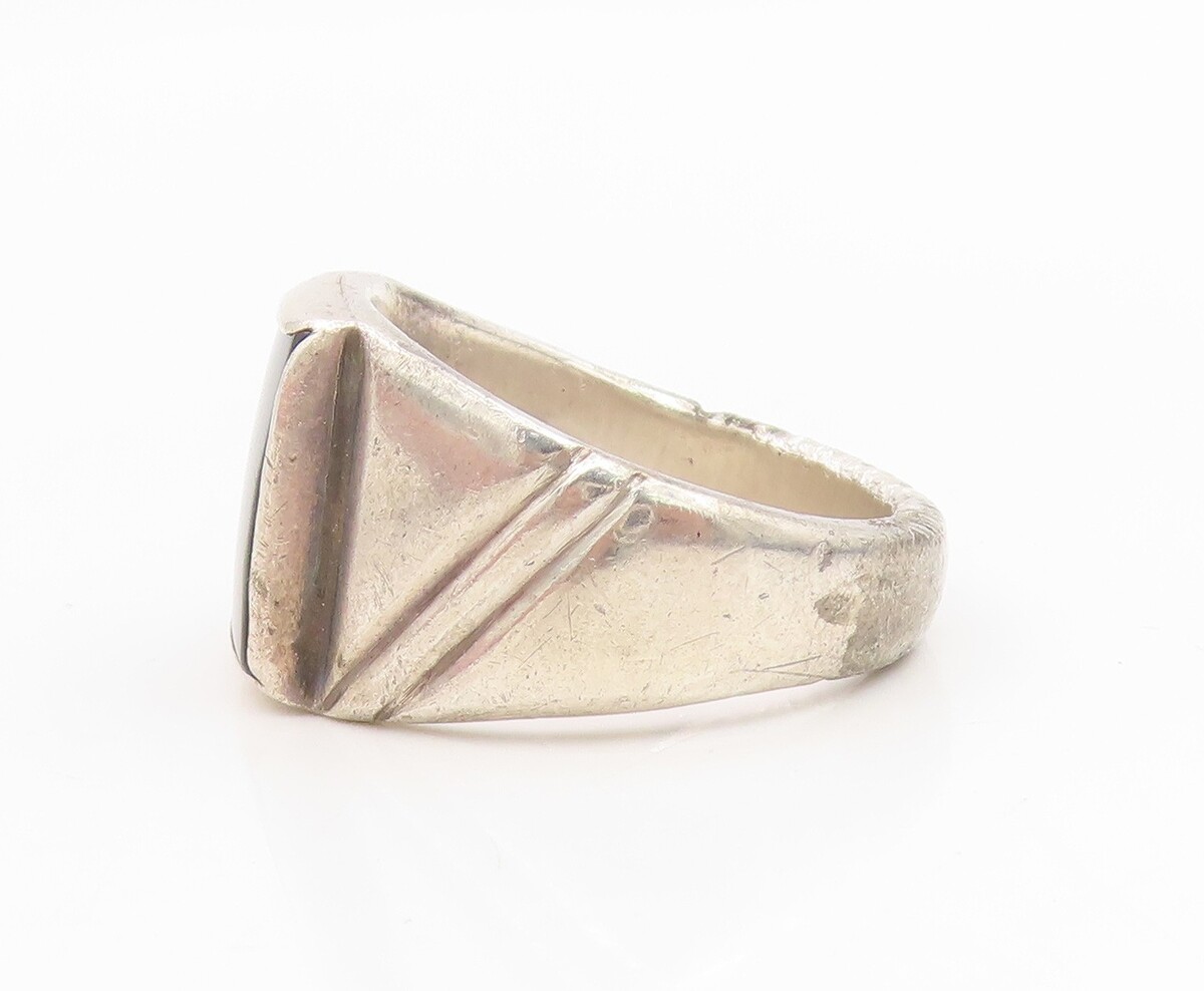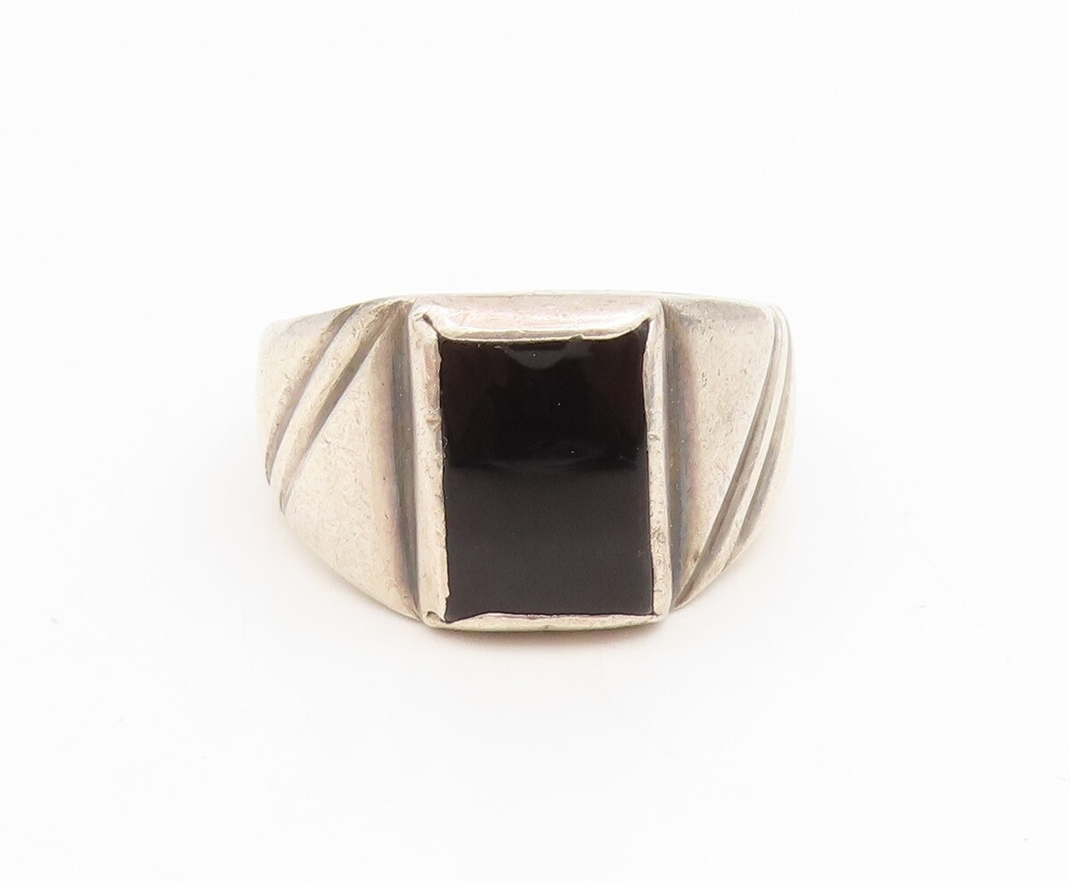 925 Sterling Silver Vintage Ring Rectangular Onyx Signet Band Sz 12.5 RG35047