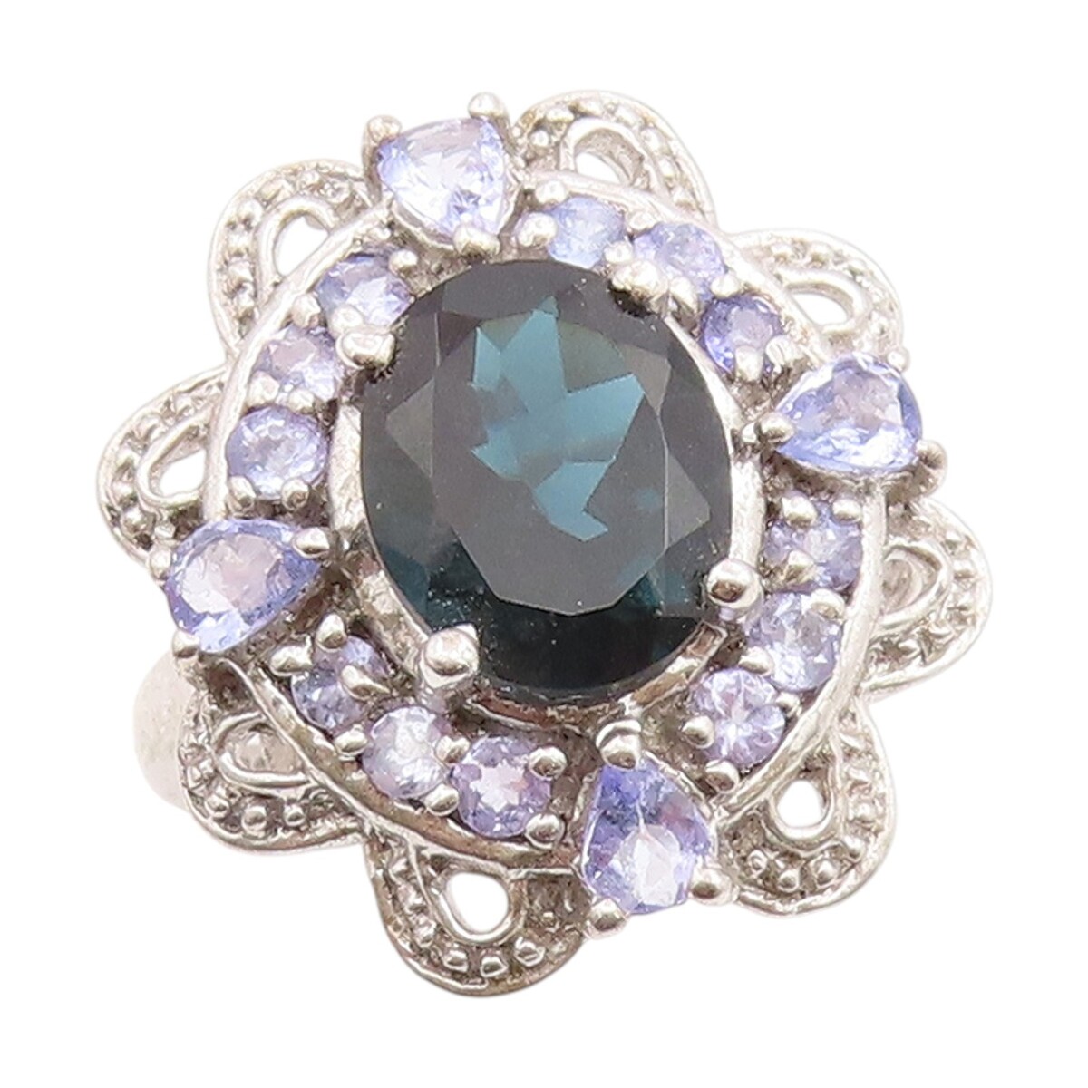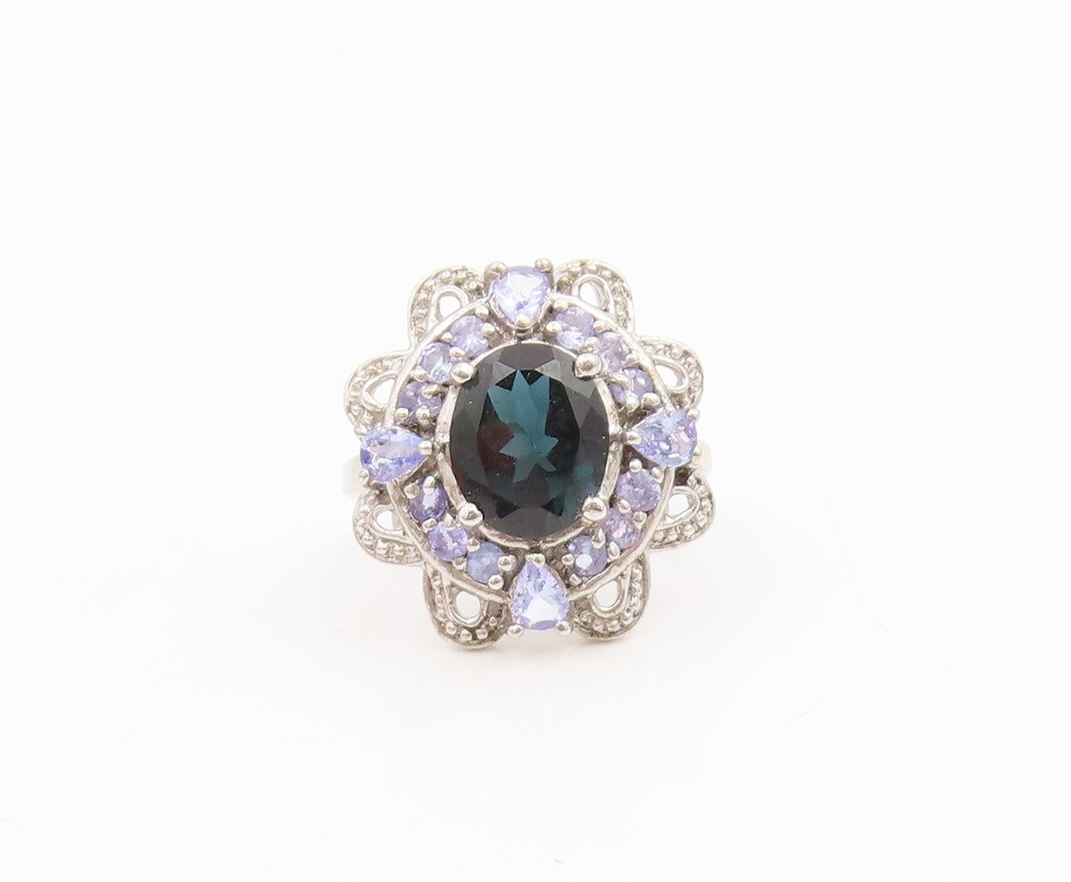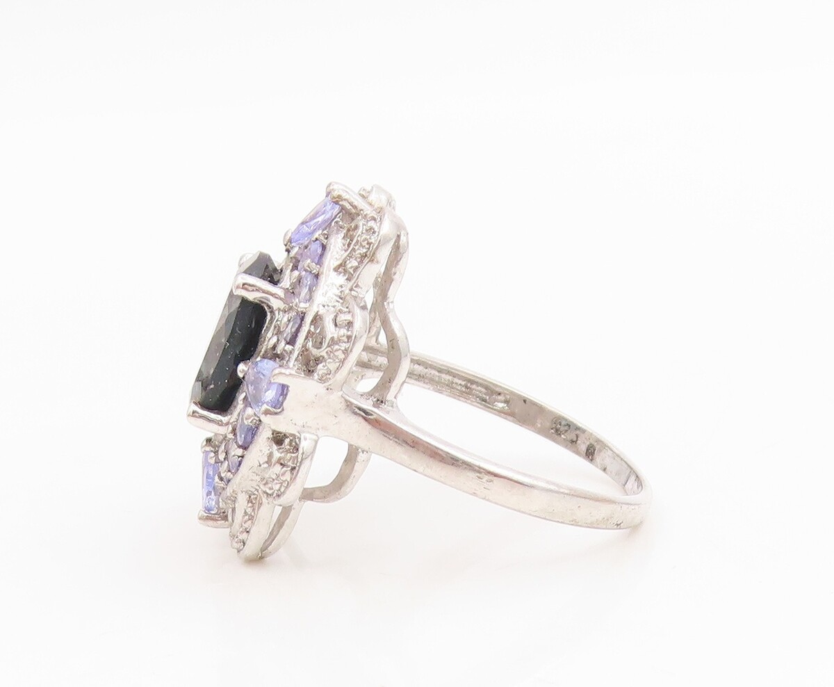 925 Sterling Silver Vintage Ring Sapphire & Tanzanite Flower Sz 8.5 RG35041