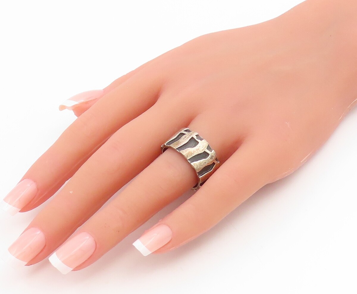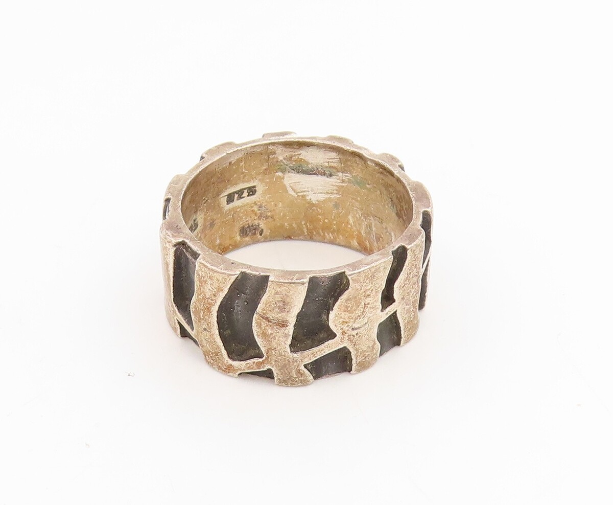 925 Sterling Silver Vintage Ring Brutalist Rugged Statement Band Sz 9 RG35054