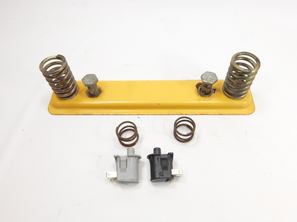 This is a used set of seat springs the seat spring channel that were removed from the unit below. The shoulder bolts smaller springs are included as well as the gray and the black seat safety switches. Everything you see in the picture is included in this offer.