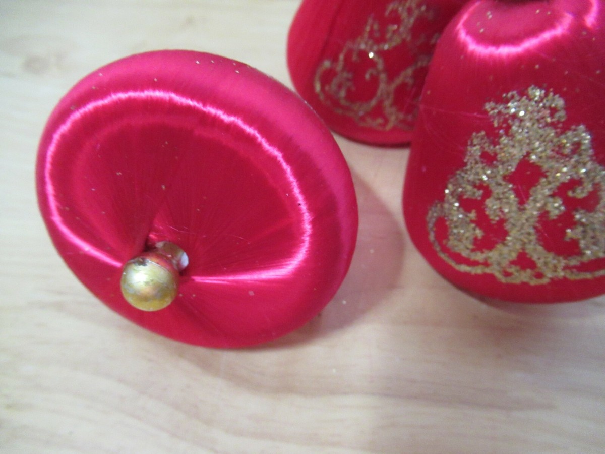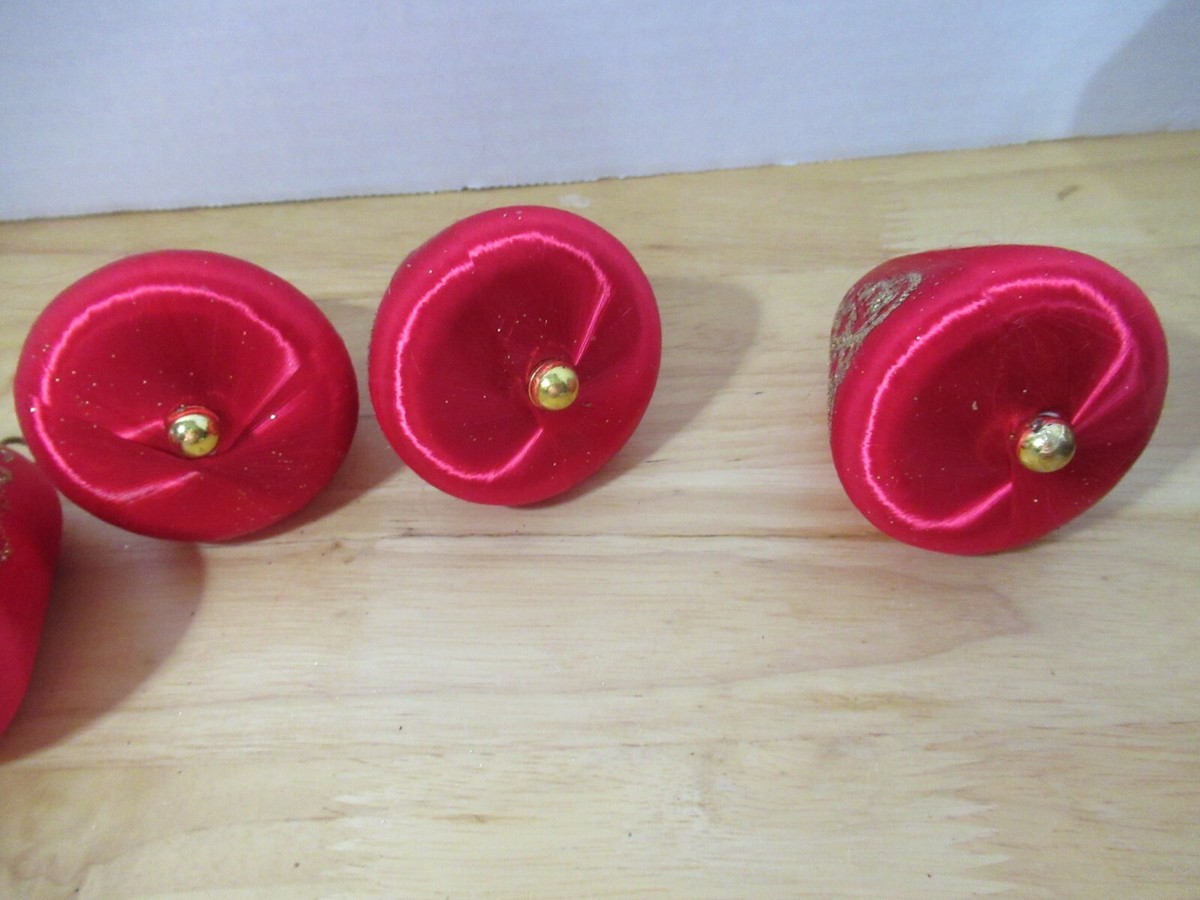 Vintage Satin Silk Spun Christmas Red Bell Ornaments 2 w/ flaws need rings