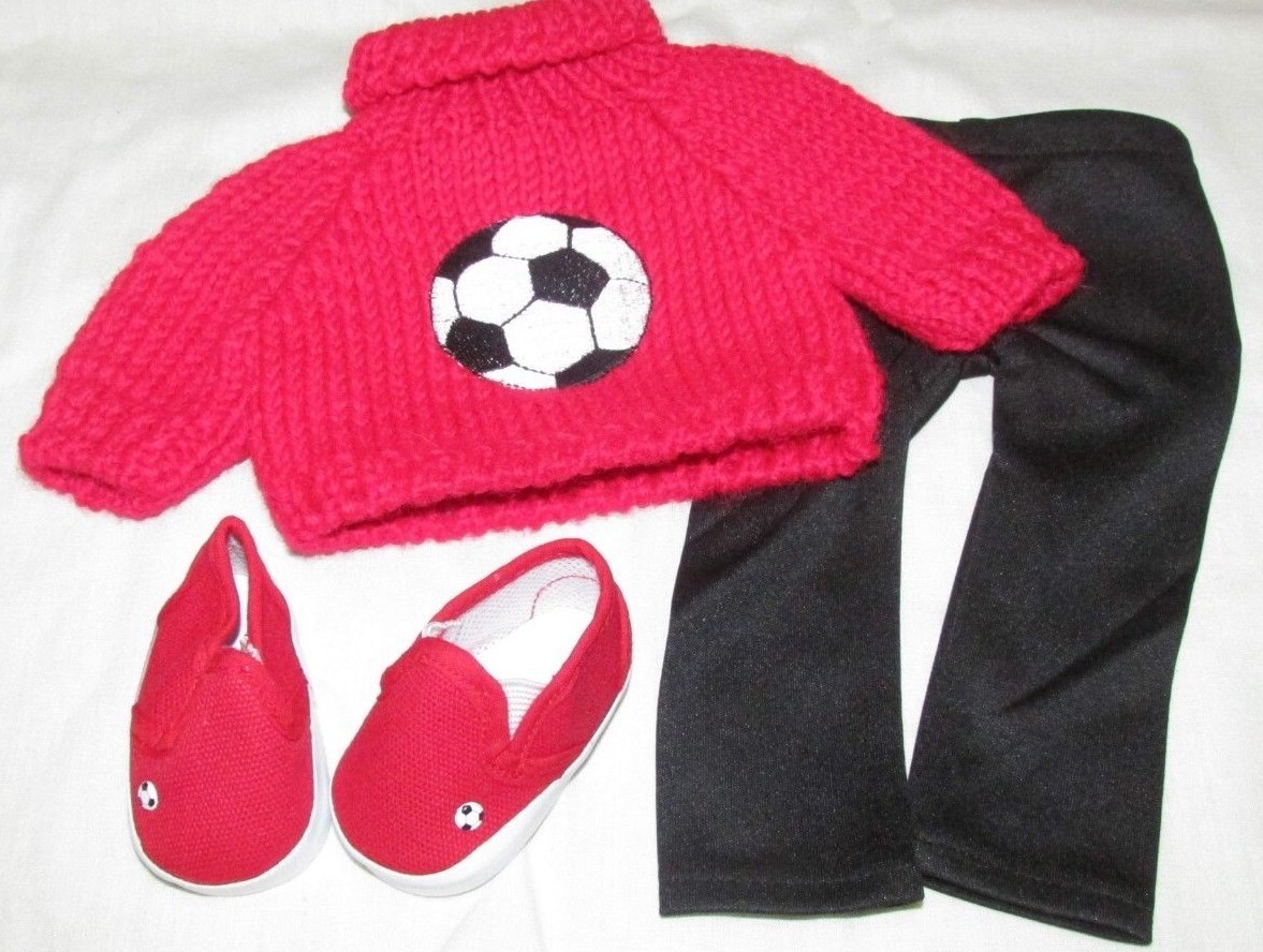 18" doll clothes hand made outfit red soccer ball sweater shoes leggings sneaker