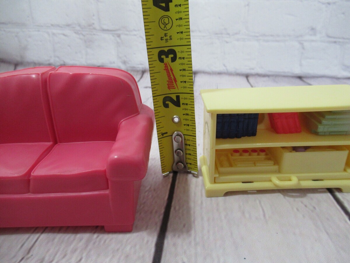 Fisher Price Loving Family Dollhouse Furniture Dark pink Sofa Couch + bookshelf