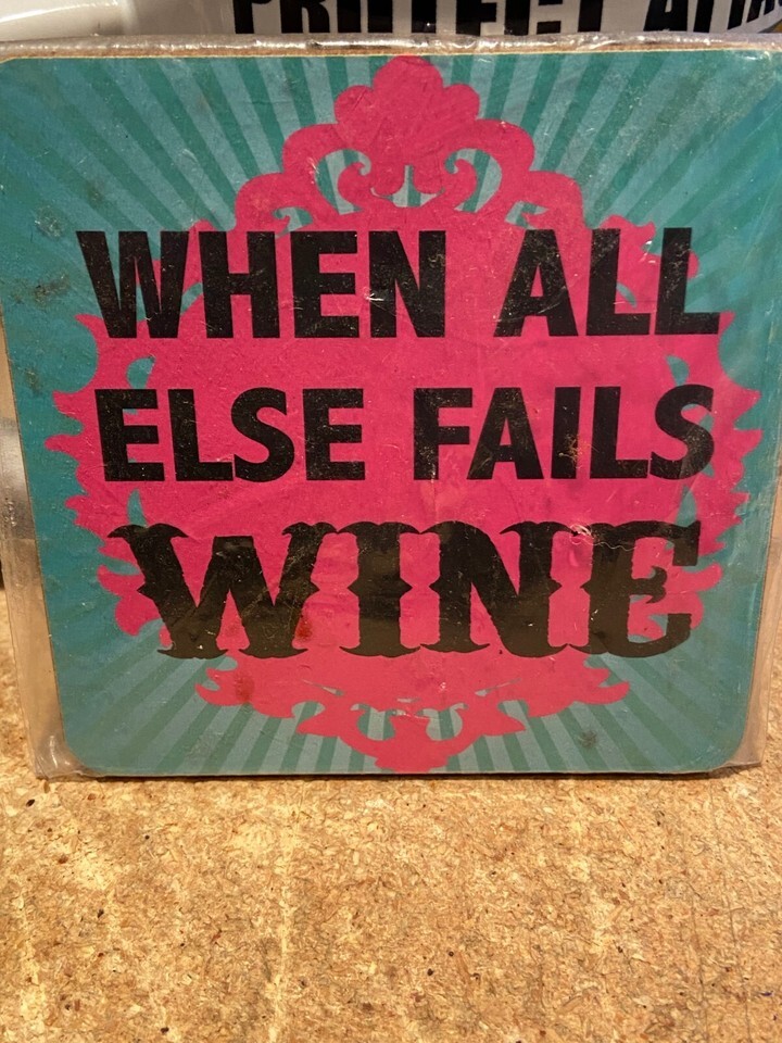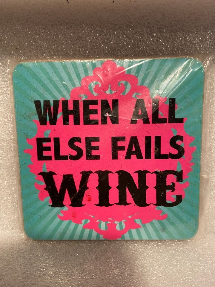 Single Drink Coaster "When All Else Fails WINE" 3.75" X 3.75" *NEW/Unused* jjj1
