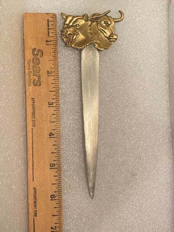 Vintage 6" Stock Market Bulls/Bears Letter Opener *Pre-Owned w/Wear* ff1
