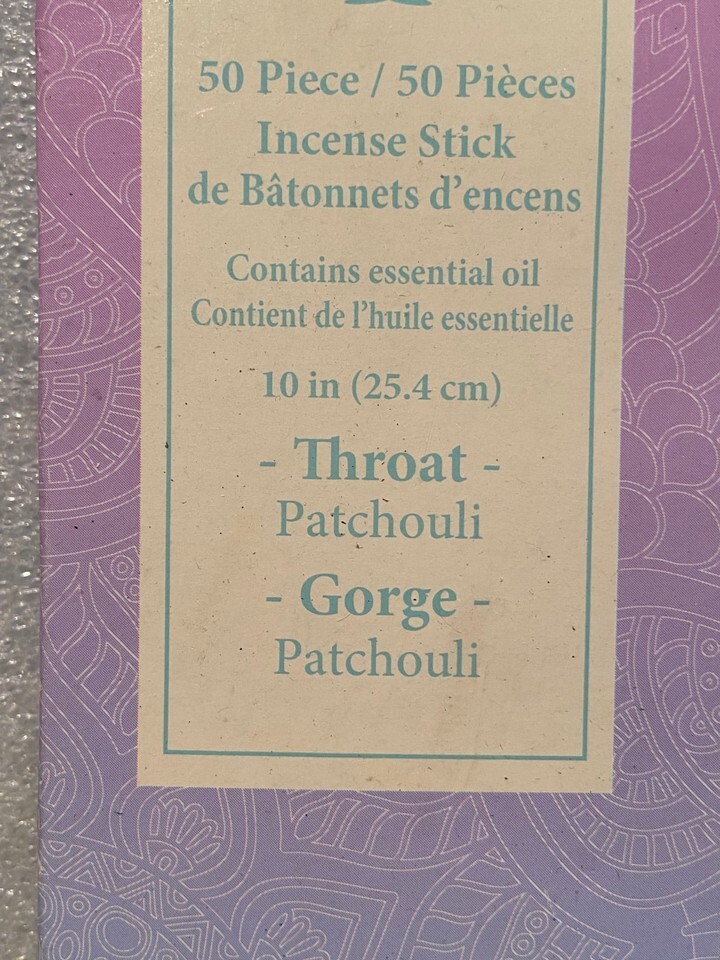 Aromatherapy 50-piece Incense Sticks | Throat-Patchouli-Gorge *NEW/Open Box* m2