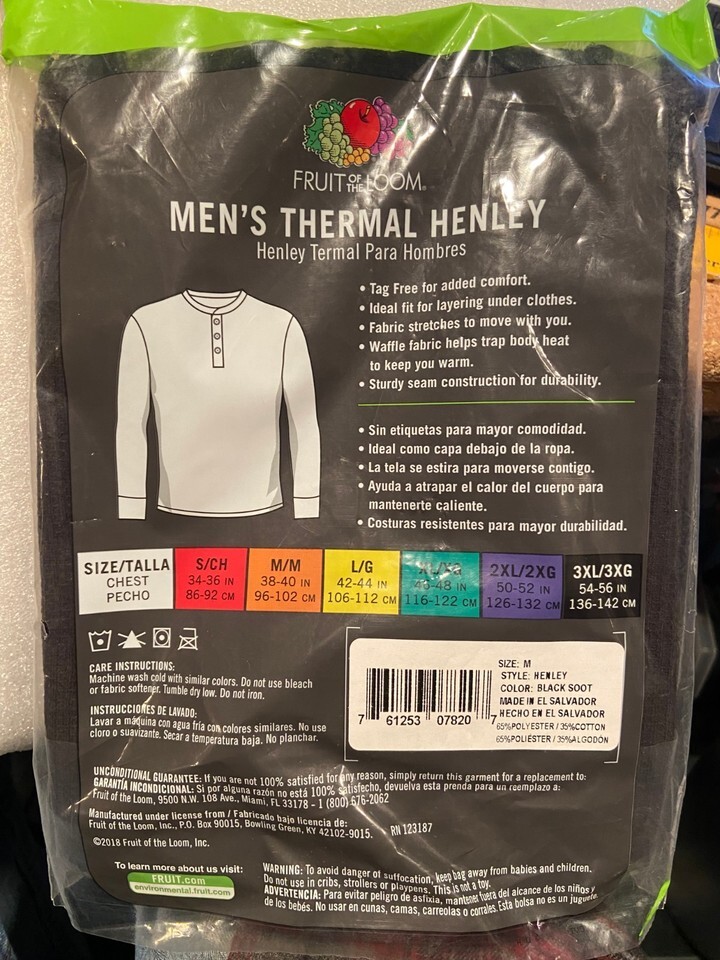 1 Medium Men's Long Sleeve Thermal Henley and similar items