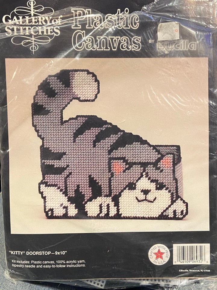 Gallery of Stitches Plastic Canvas Kitty Cat Doorstop Kit- Bucilla *NEW/OPEN zz1