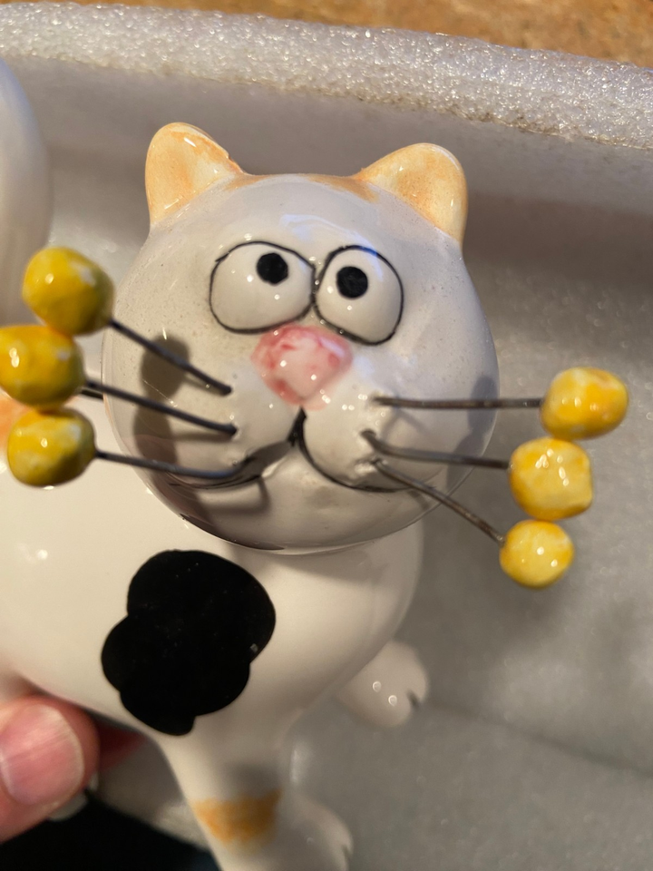 5" Amy LaCombe Cat Coin Bank Ceramic w/Beaded Whiskers & Stopper Pre-Owned BT2