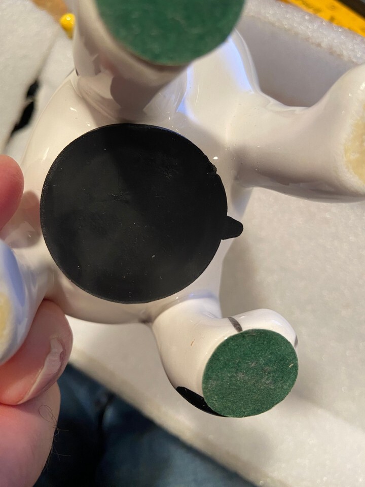The ceramic cat bank is 5" tall with a black rubber stopper