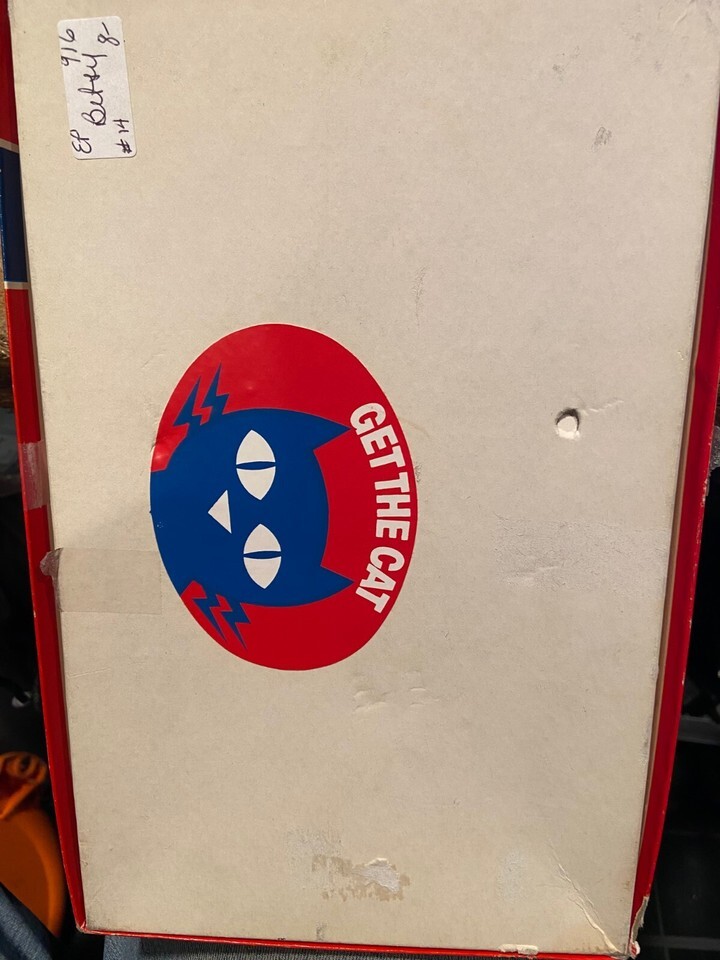 Also on the bottom of the box is a sticker that I don't believe belongs. It says "GET THE CAT" Pictured.