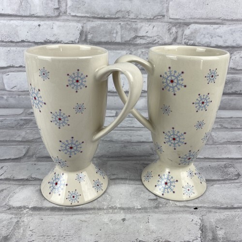 Whittard of Chelsea Hot Chocolate Blue Red Snowflake Latte Mug Set of 2