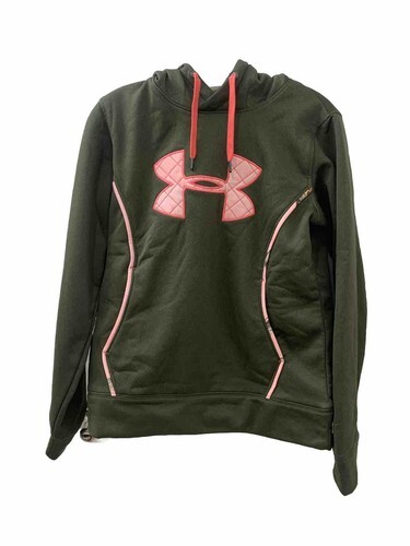 Under Armour Coldgear Big Pink Logo Hoodie Woman's Small Army Green Fleece NWOT