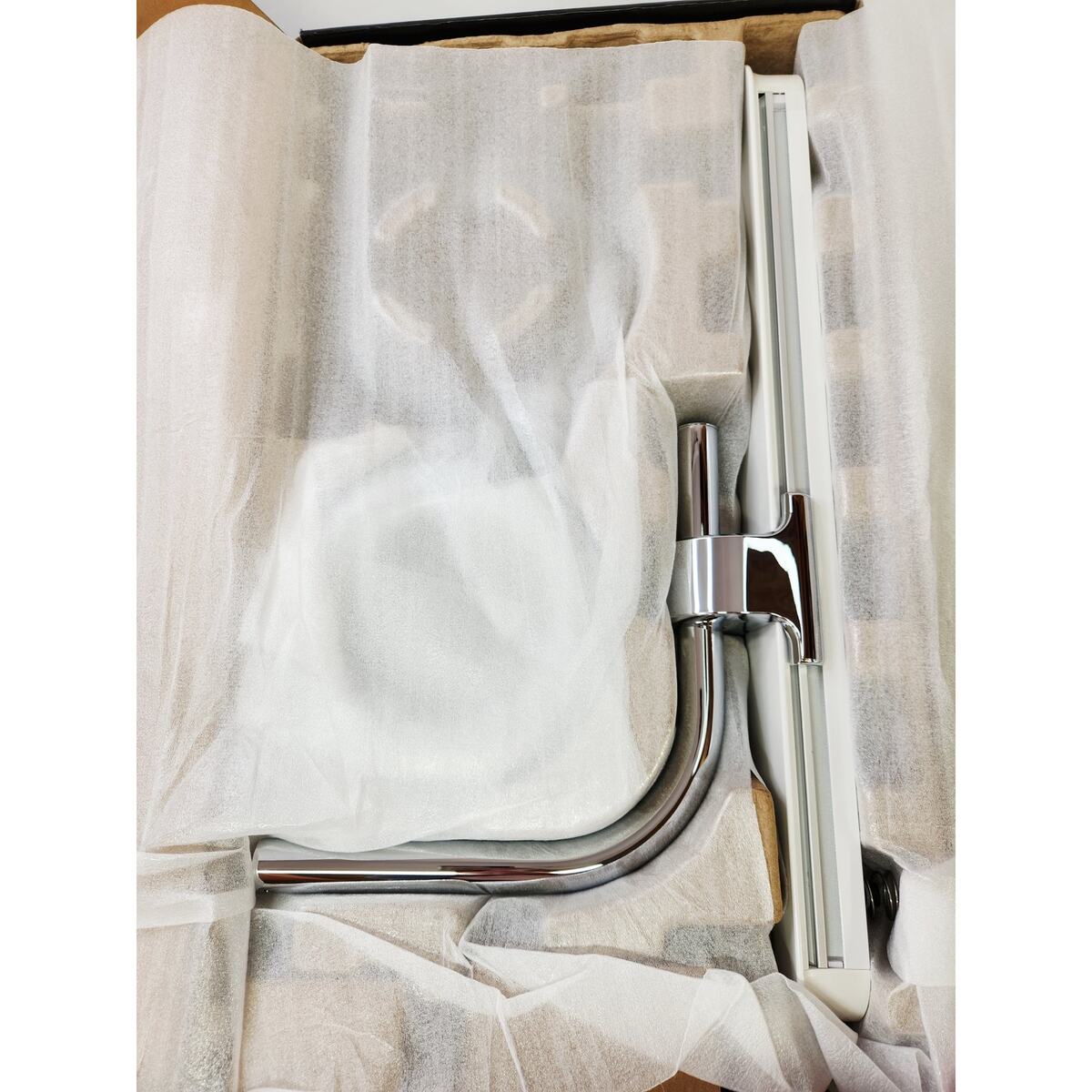 The shower delivers up to 45% water savings compared to a standard Moen 2.5 GPM showerhead.