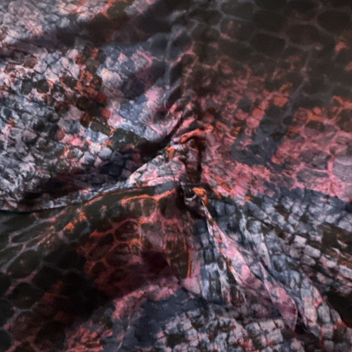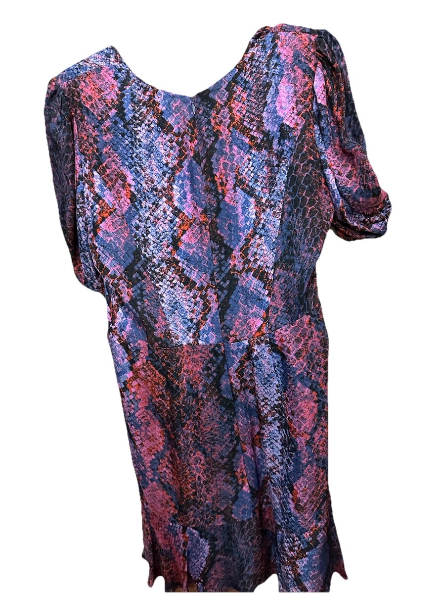 Warm weather chic, silk mini dress, romantic animal print, of purples and navy pink, elegant daywear or evening wear, ruched sheath fully lined