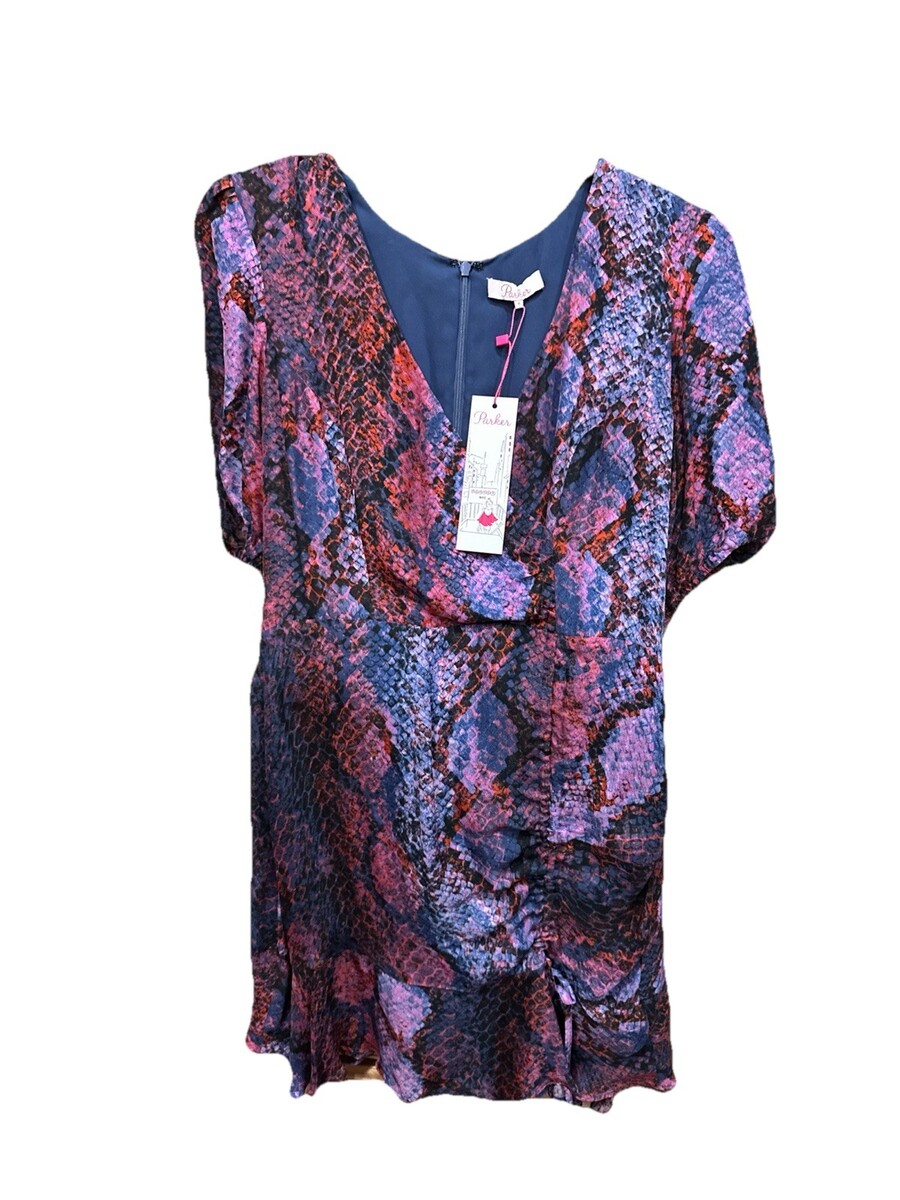 Parker Krislyn Silk Dress 4 Serpintina Ruched Ruffle VNeck Short Sleeve NWT $318