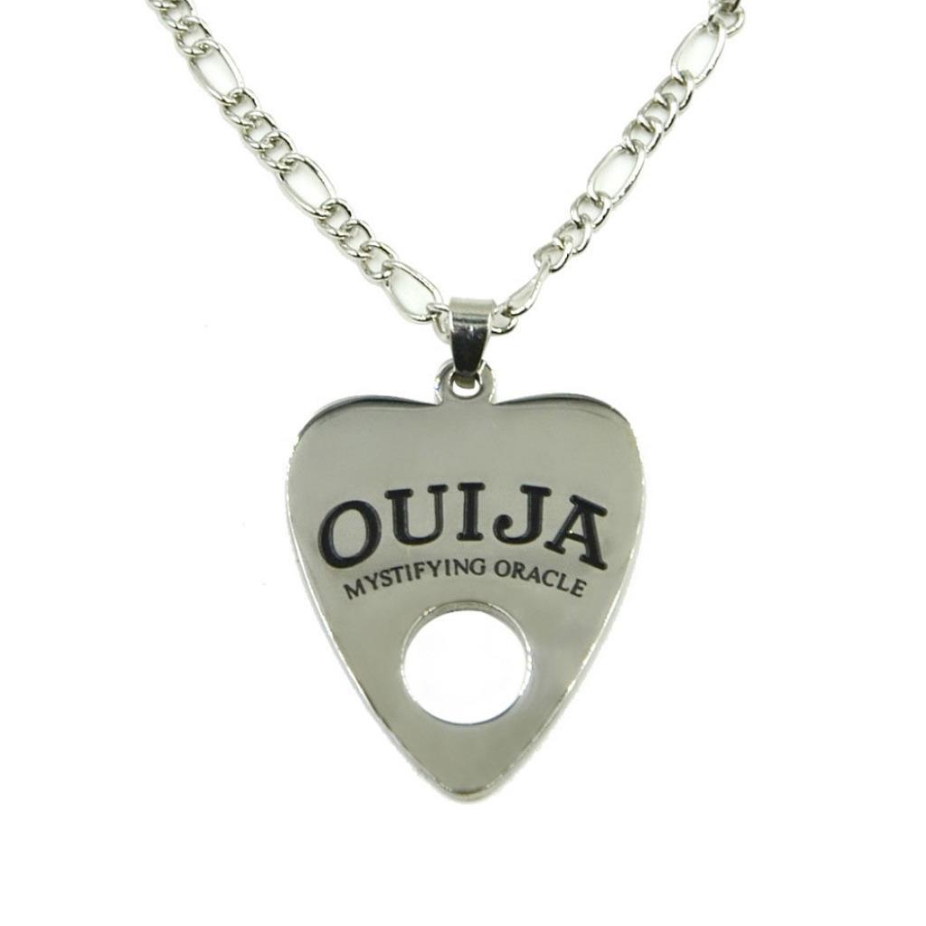 OUIJA BOARD PLANCHETTE NECKLACE Silver Tone Metal Wood Pendant Goth Occult Punk