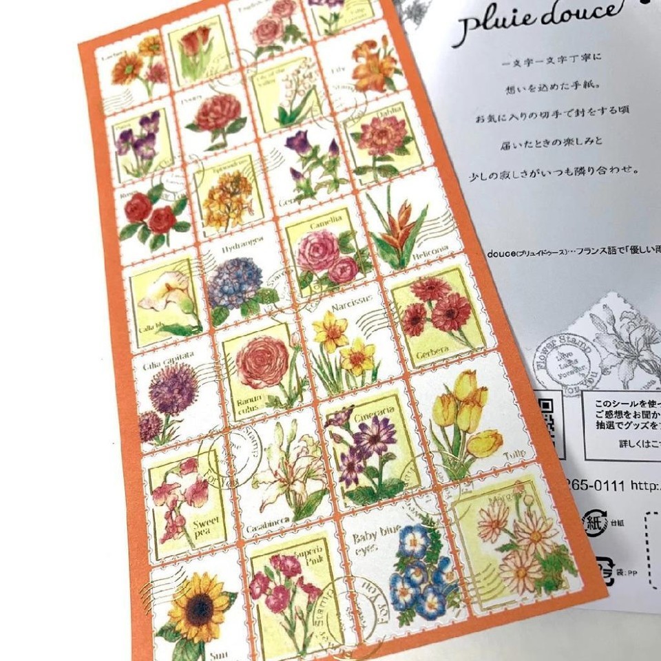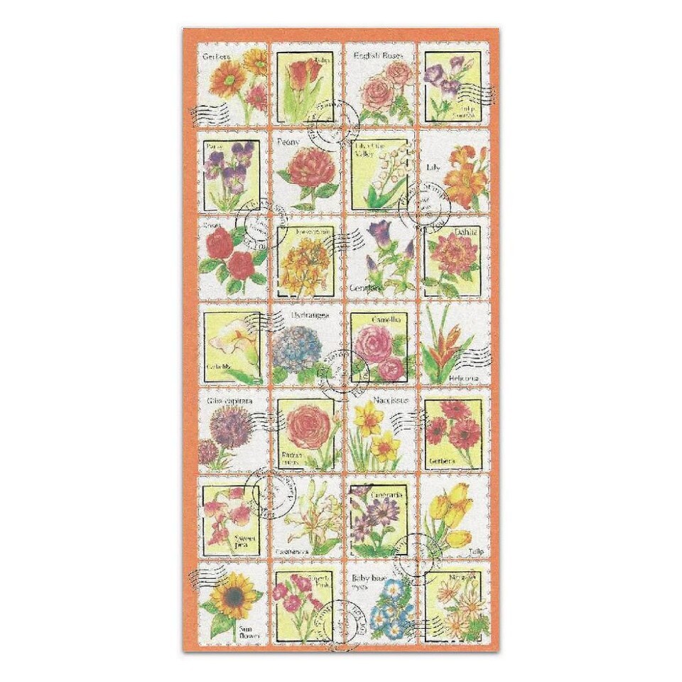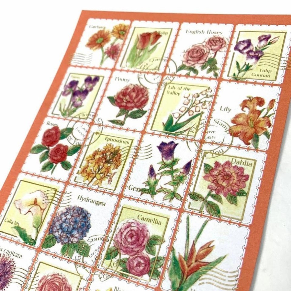 FLOWER STAMP STICKERS Craft Scrapbook Sticker Sheet Kawaii Colorful Floral NEW