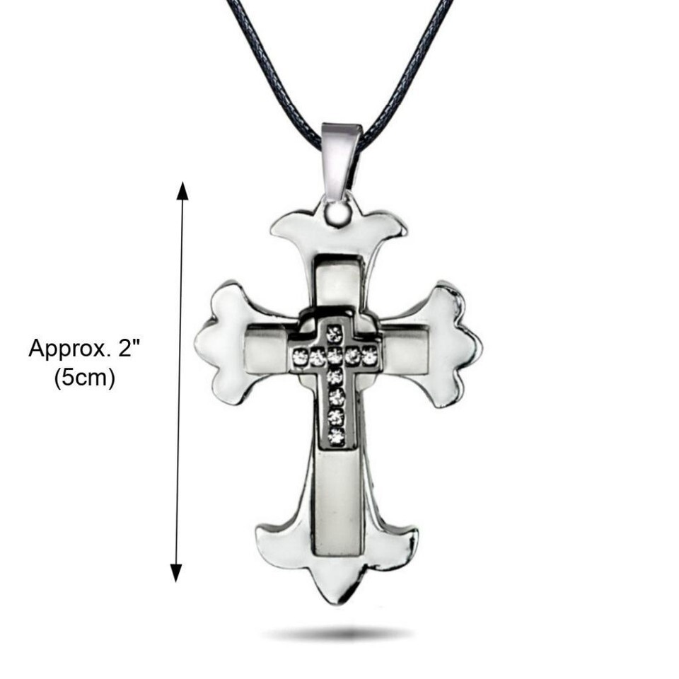 CROSS NECKLACE Stainless Steel Crystal Accents Solid Pendant Men Women Unisex
