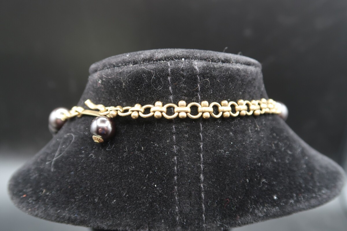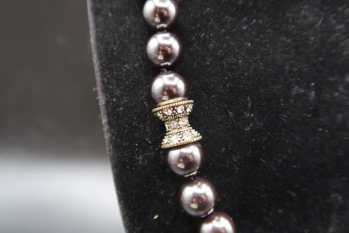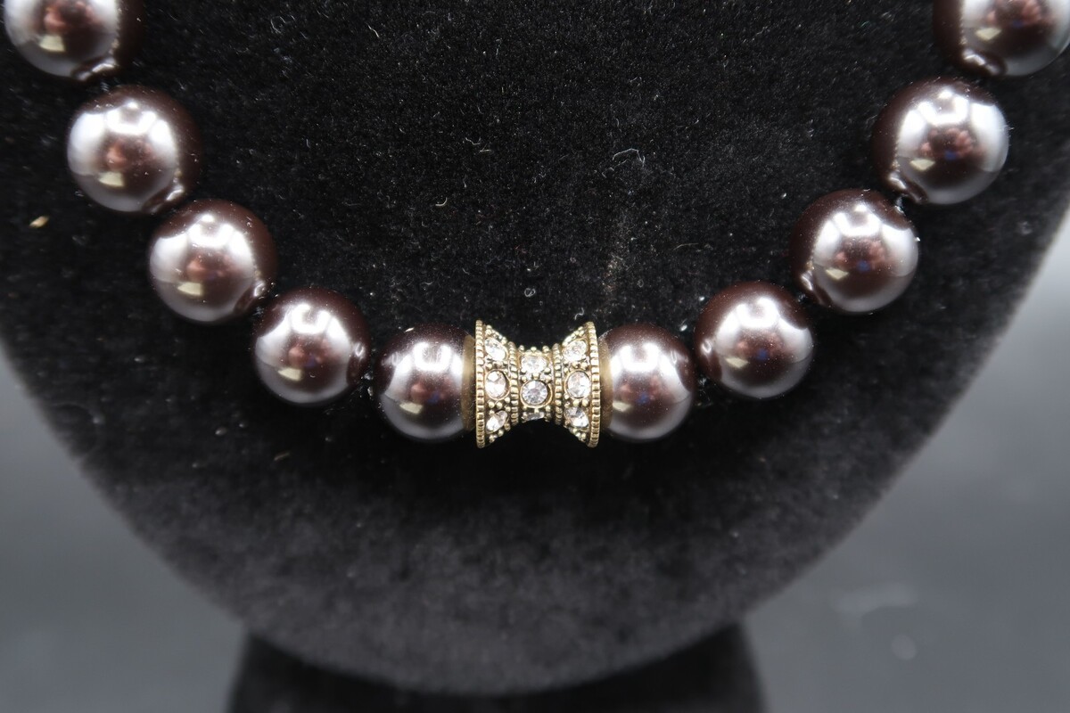 Vtg Faux Gray Pearl Choker Necklace Barrel Accent w/ Rhinestones