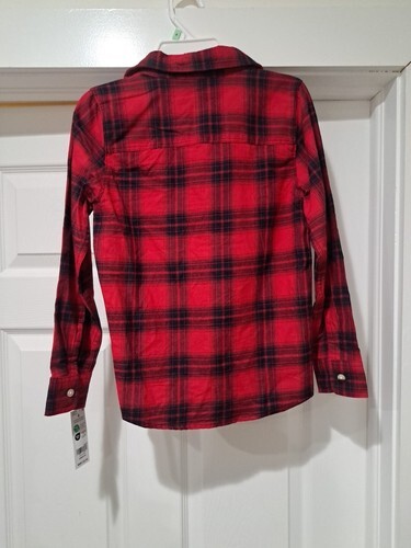 OshKosh B'Gosh Boys' Long Sleeve Woven Buttonfront Shirt Kids Size 8 Red Cotton