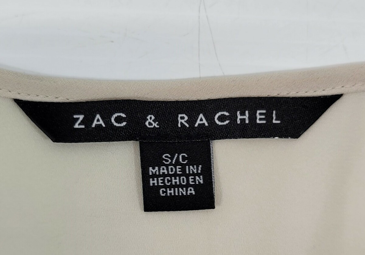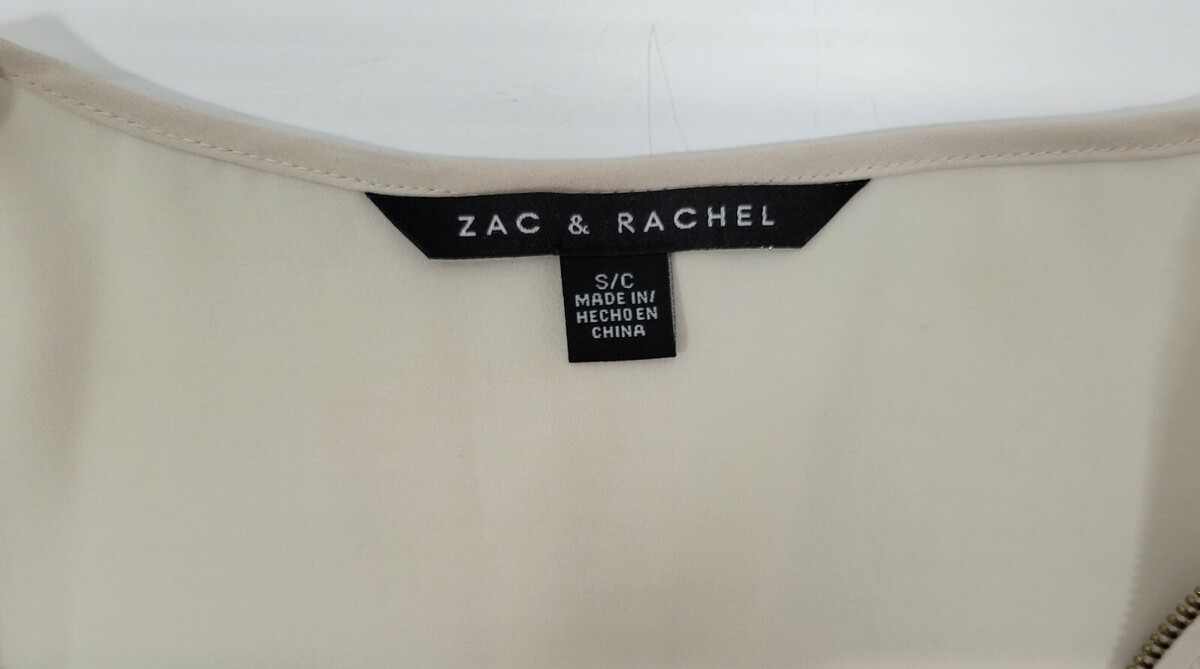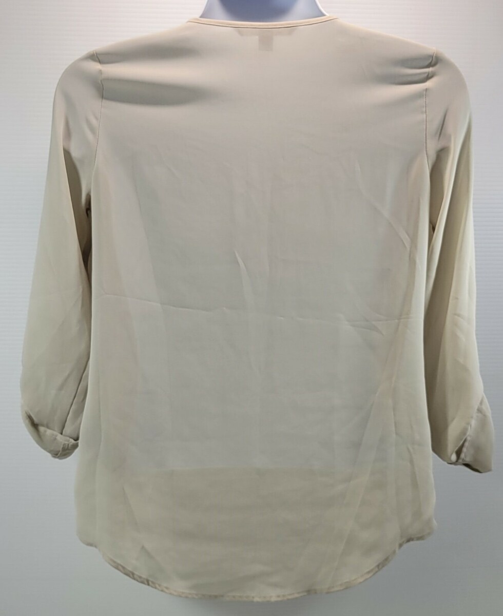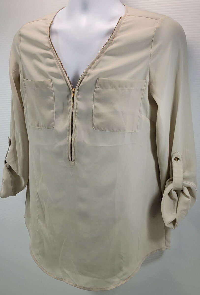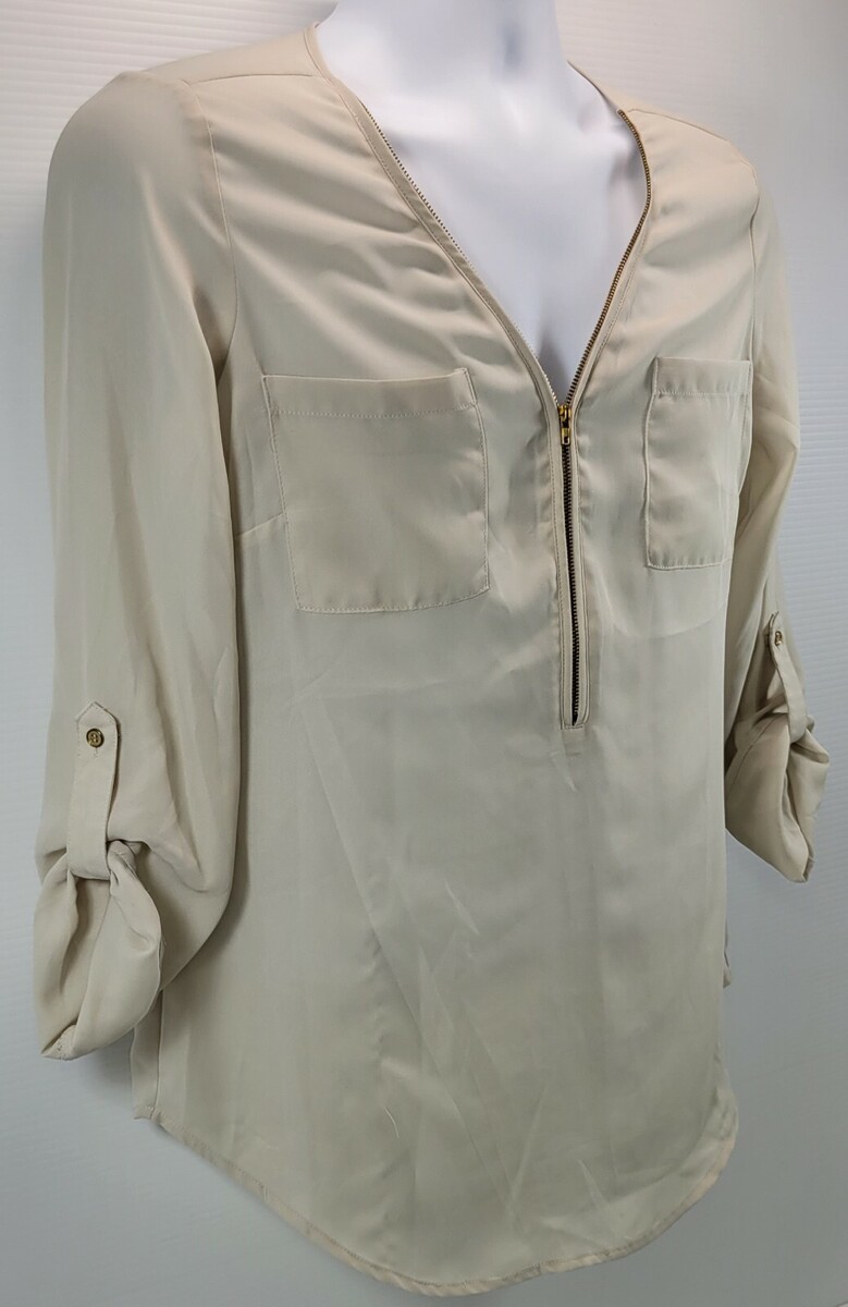 MM) Zac & Rachel Roll Sleeve Zipper Collar Women's Almond Polyester Blouse Small