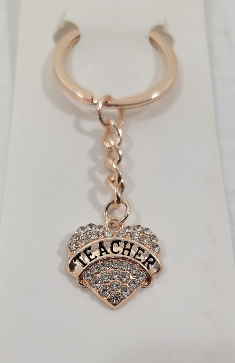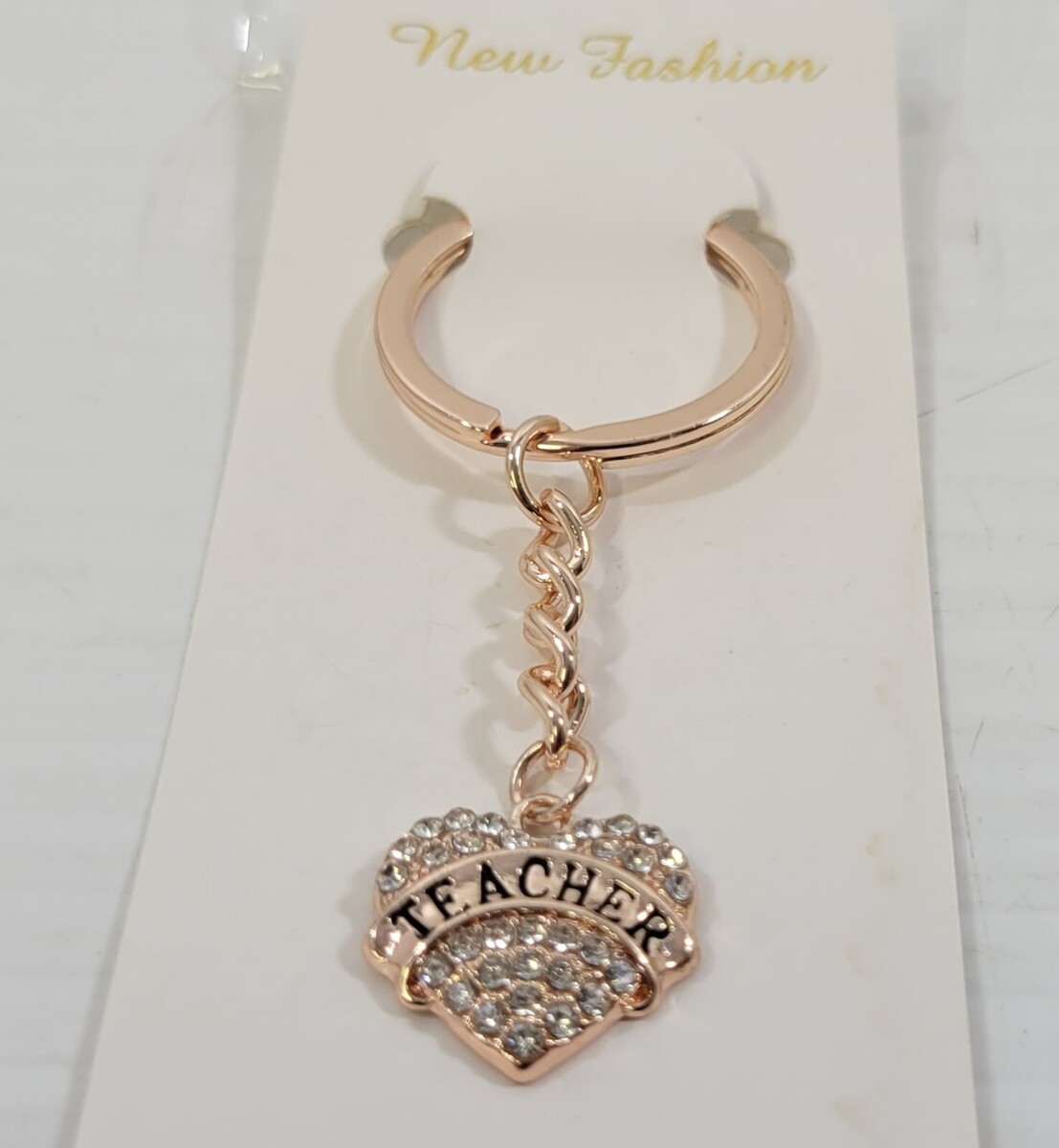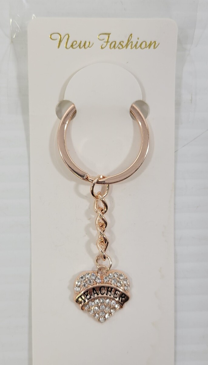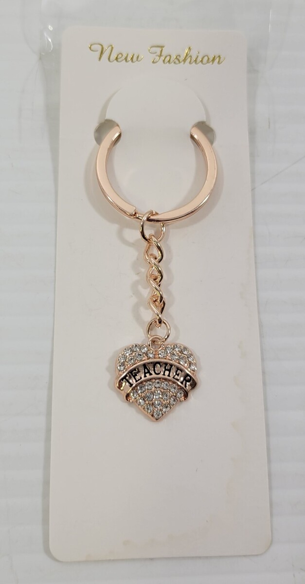 MM) New Fashion Rose Gold Tone Studded Teacher Heart Keychain