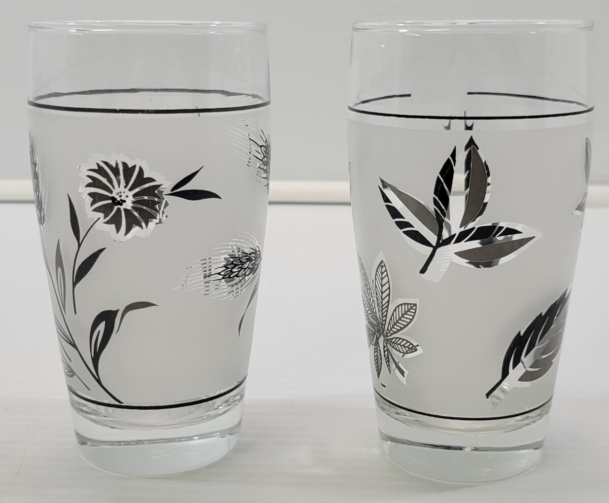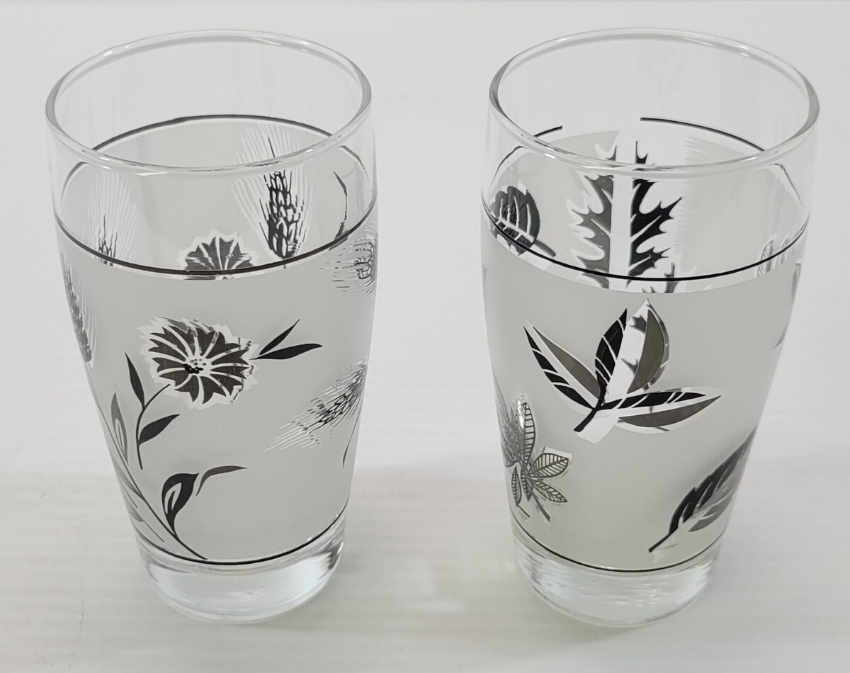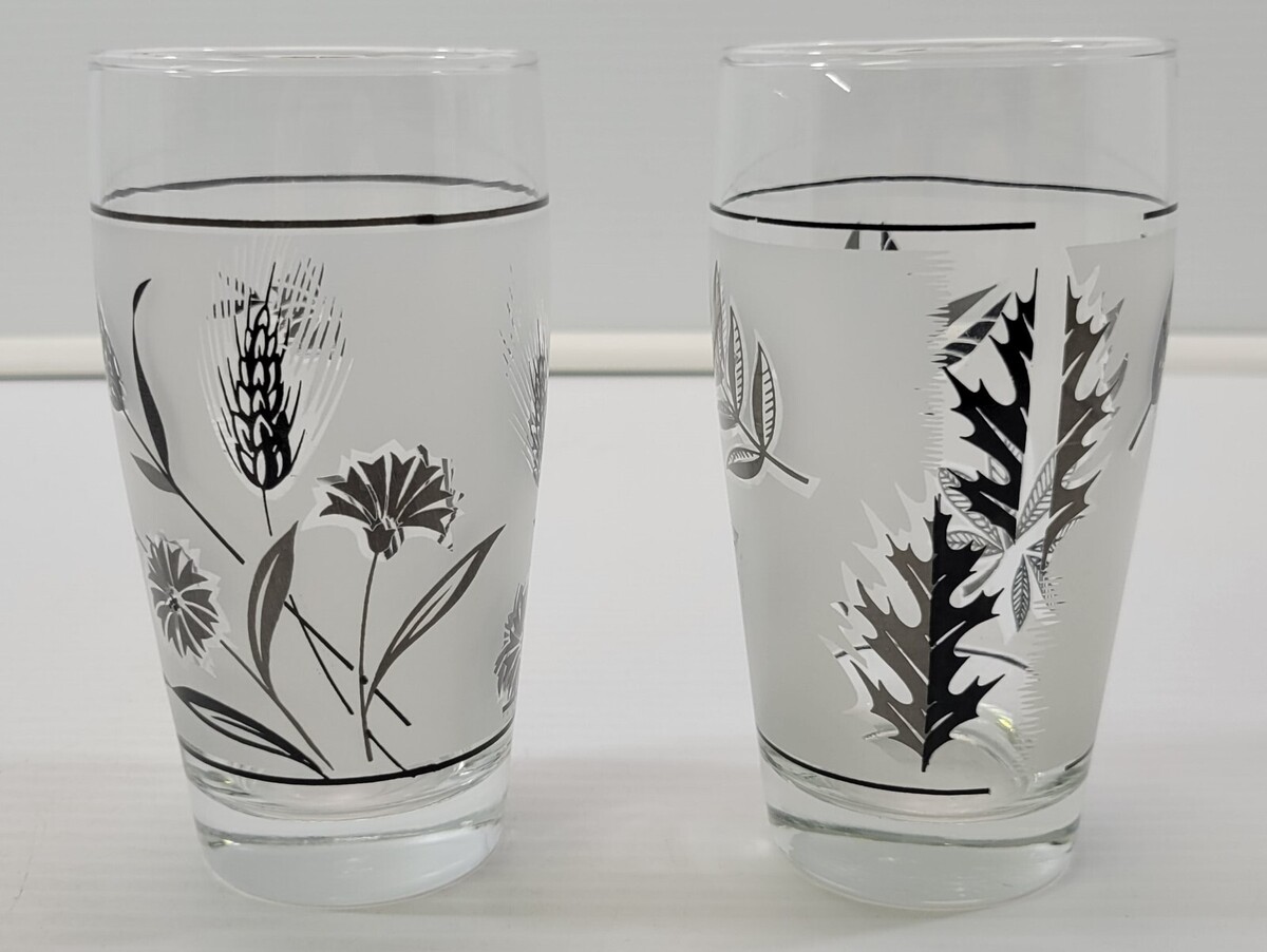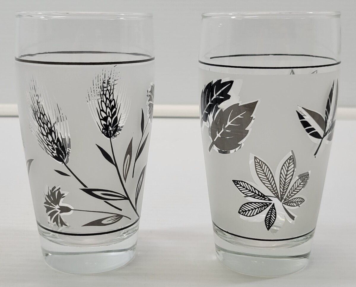 Libbey Glass Company Silver Foliage Leaves and Wheat Tumblers