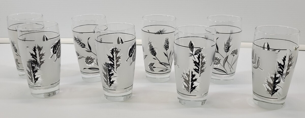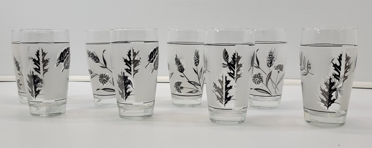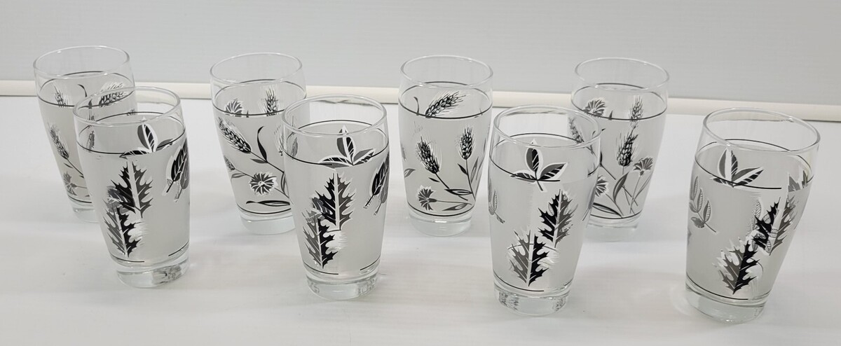 *MM) Lot of 8 Libbey Glass Company Silver Foliage Leaves and Wheat 10oz Tumblers