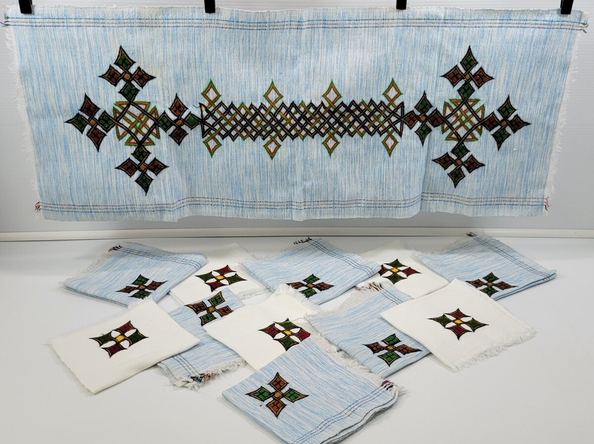 MM) Tilet Pattern Symbol Decorative Embroidered Fringed 11 Napkins Table Runner