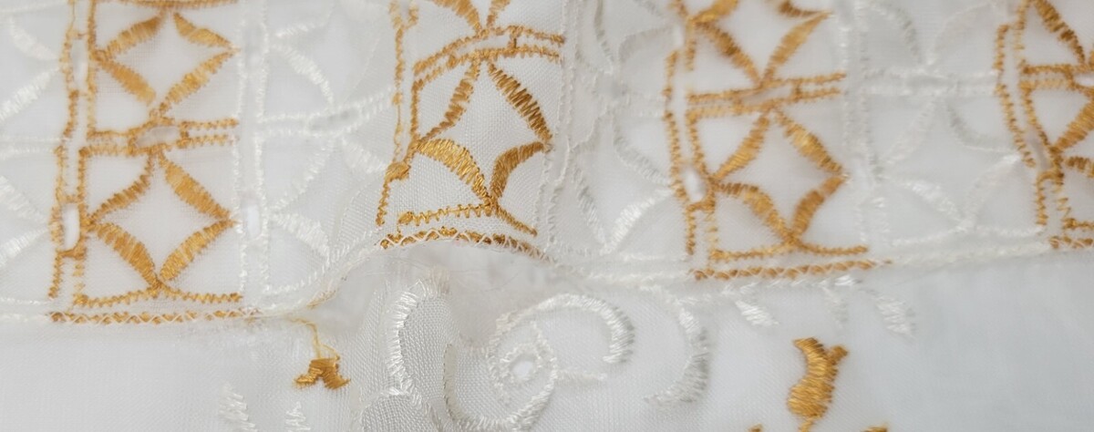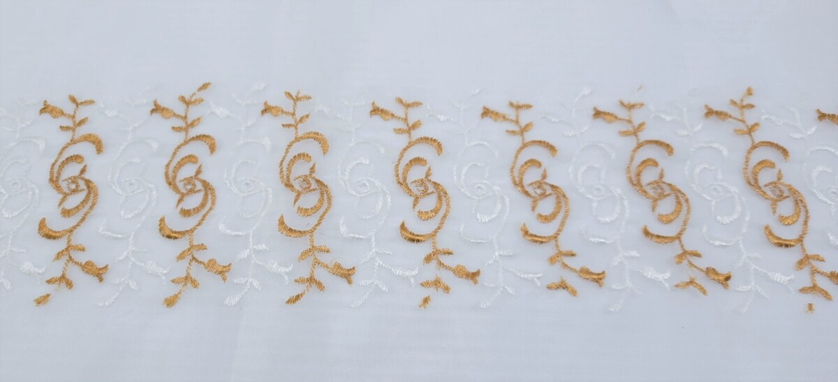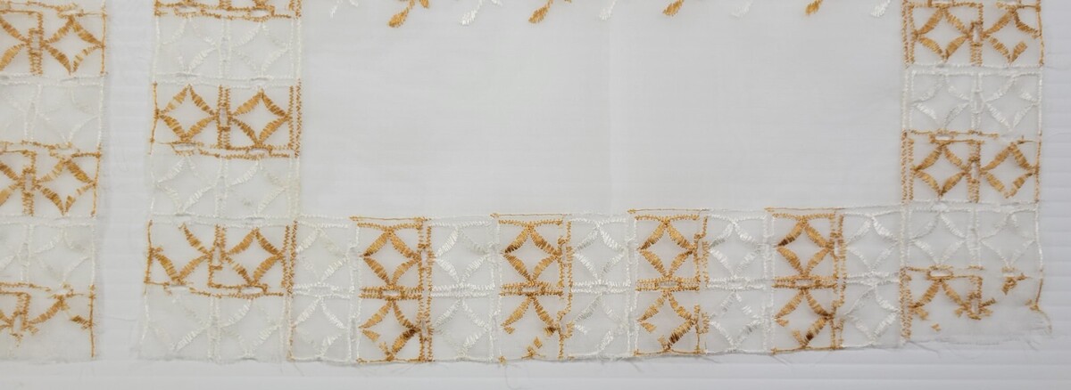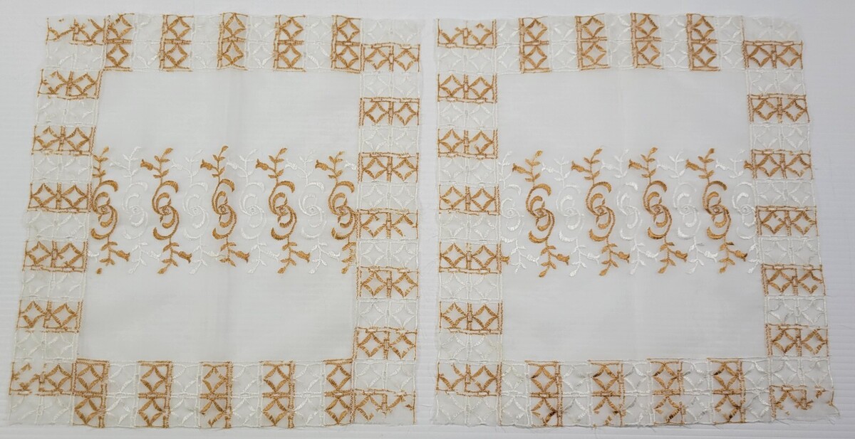 MM) Vintage 4 Piece Doily Lace Table Runner Rectangle Set White Gold