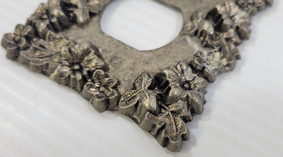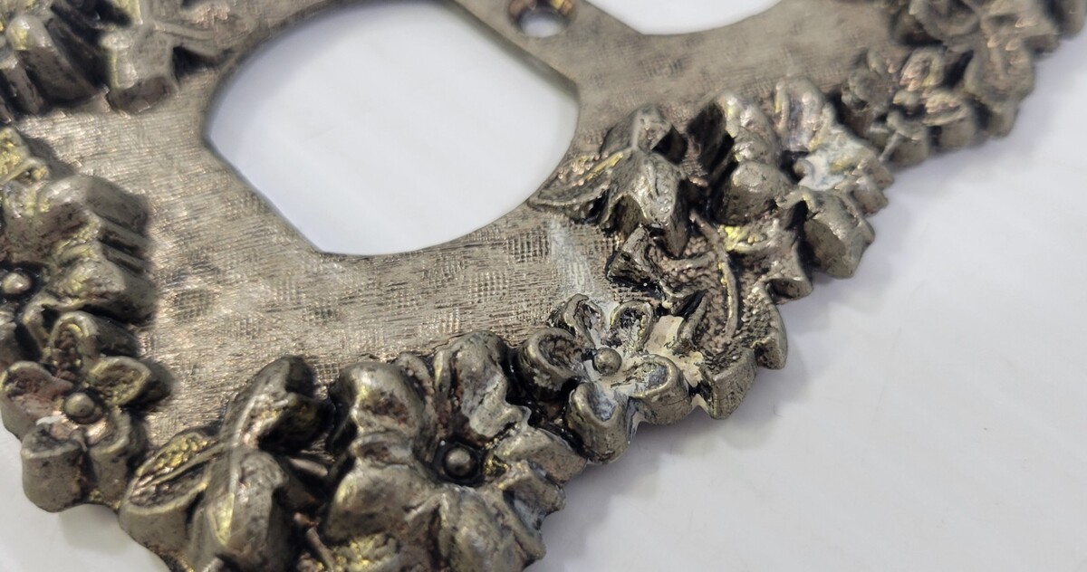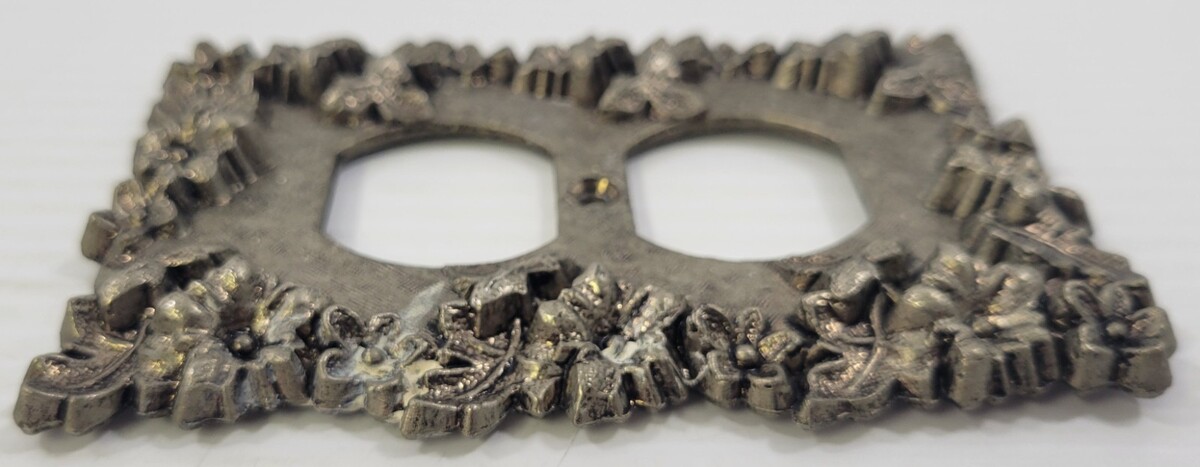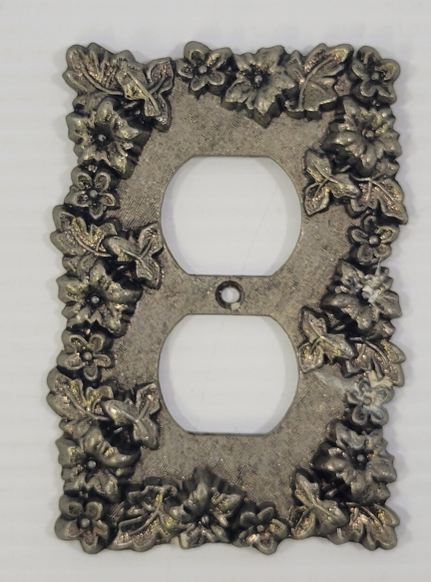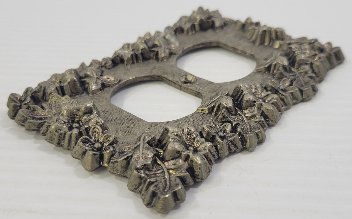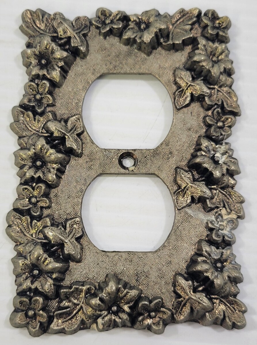 LL) Vintage Brass Metal Floral Electrical Outlet Cover Plate