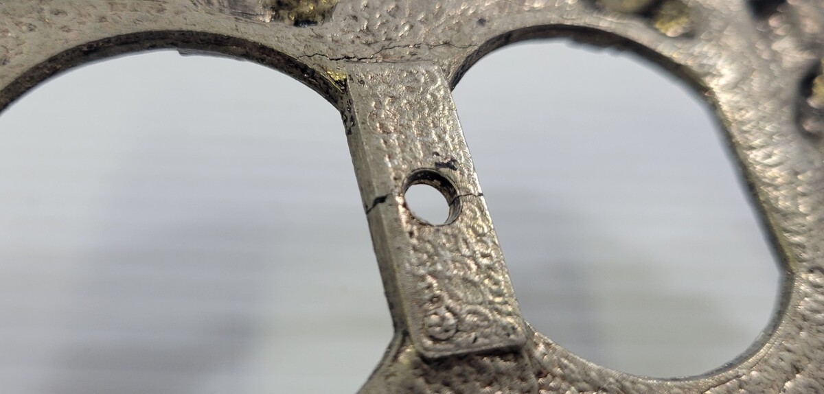 Outlet cover is vintage used item removed from a home renovation with signs of age and use. When examined closely, there is a slight crack at the screw hole most likely from being overtightened at some point, but sturdy metal still works as intended.