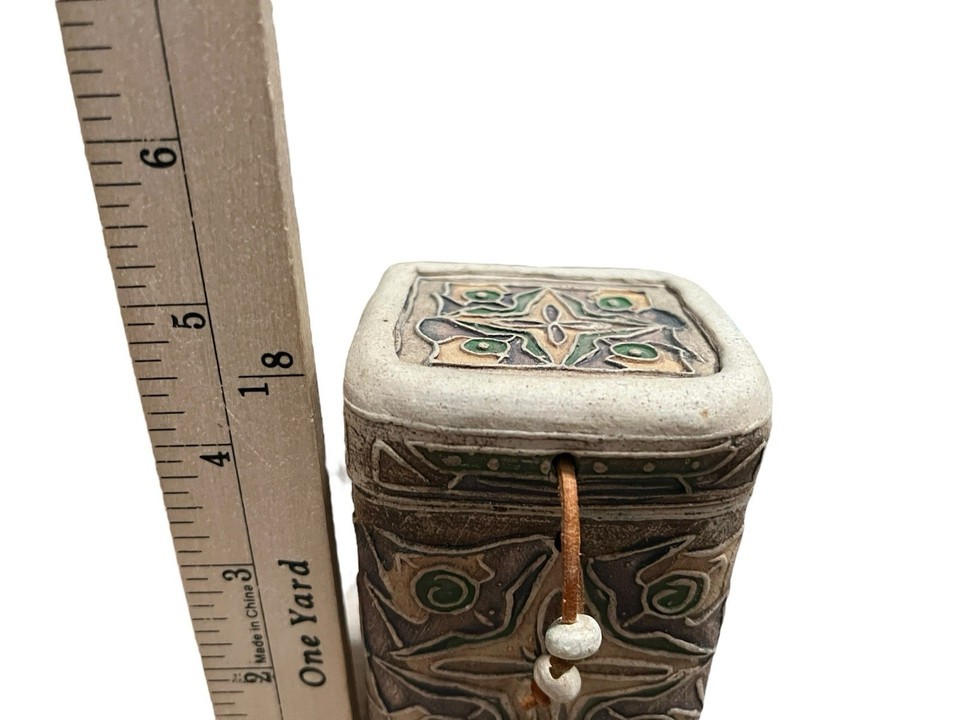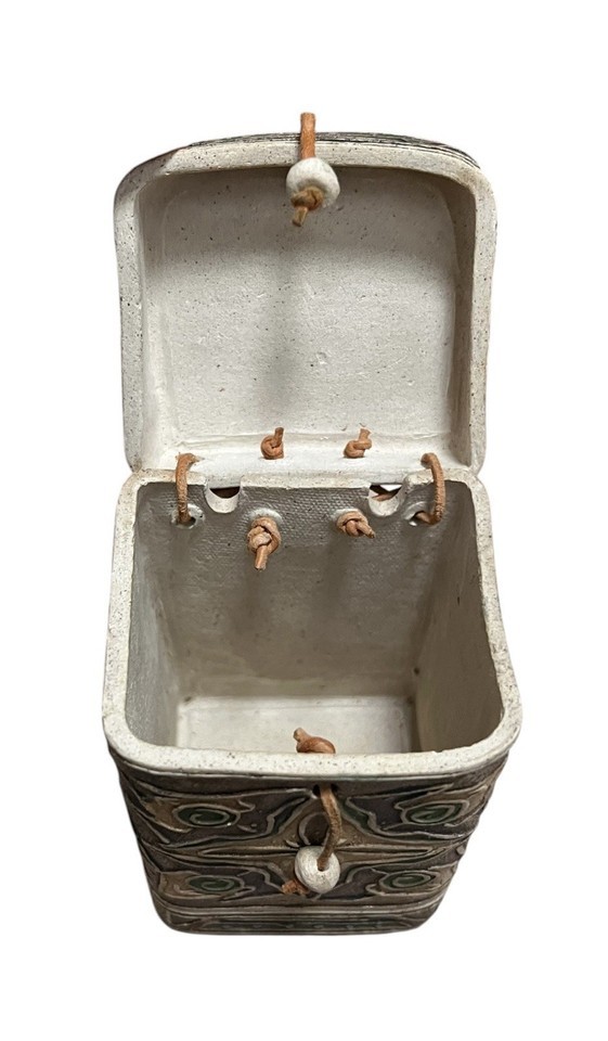 Pottery Clay Trinket Box With Leather Hinges and lid