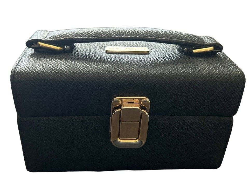 Vintage St.John Designer Case Mini Travel Top Handle Trunk Bag Mirror Black