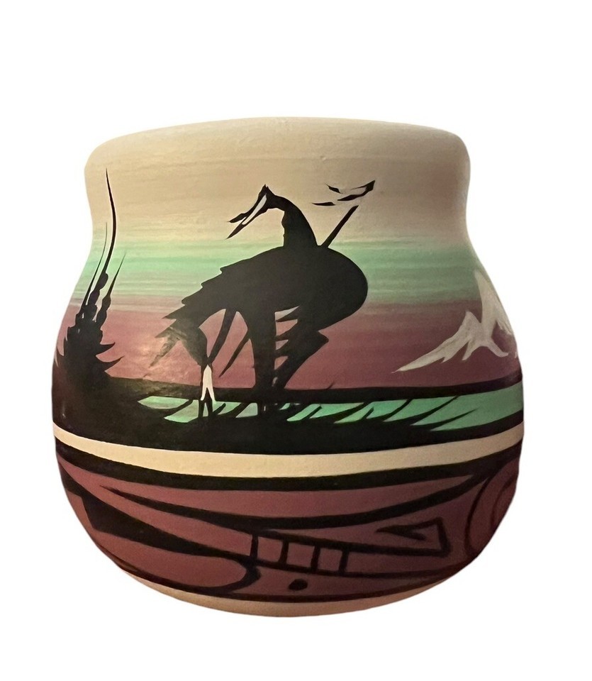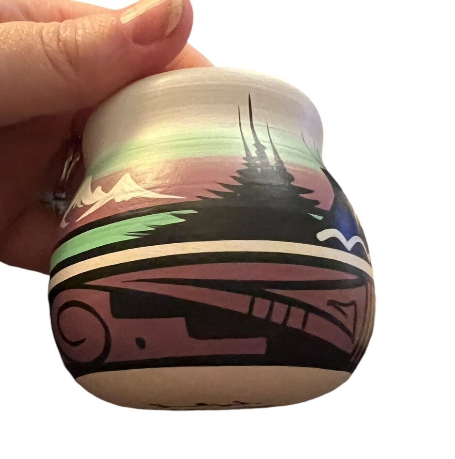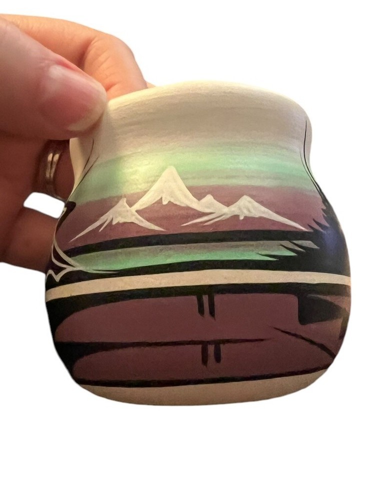 Small vase handmade hand-painted by artist Judy Mango by Cedar Mesa pottery