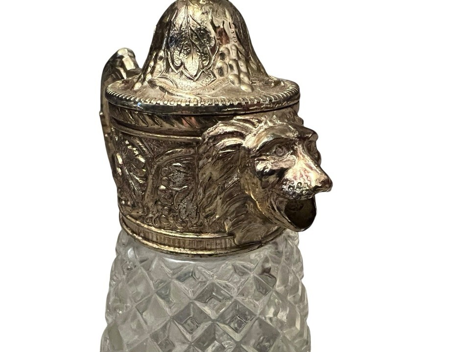 Lion's Head Vtg Leonard Waffle Diamond Glass Syrup Creamer Pitcher Plated
