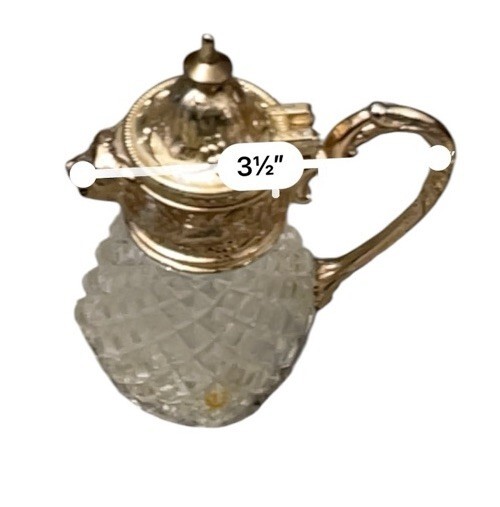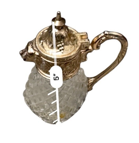 Elegant Syrup Pitcher Body is Clear Diamond Cut Glass Head Spout Handle are Silverplated Metal