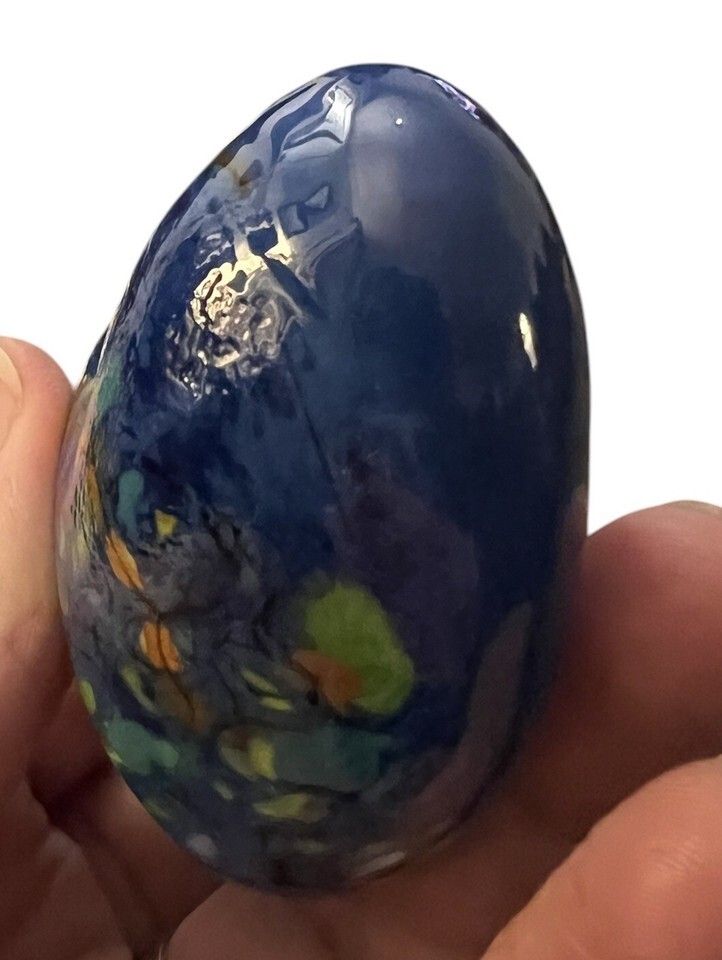 Dehanna Jones Signed Art Glass Heart Paperweight Blue Green Yellow End Of Day