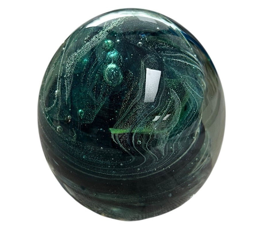 KERRY Art Glass Paperweight Green Swirl Bubble Handmade Ireland Signed 4”