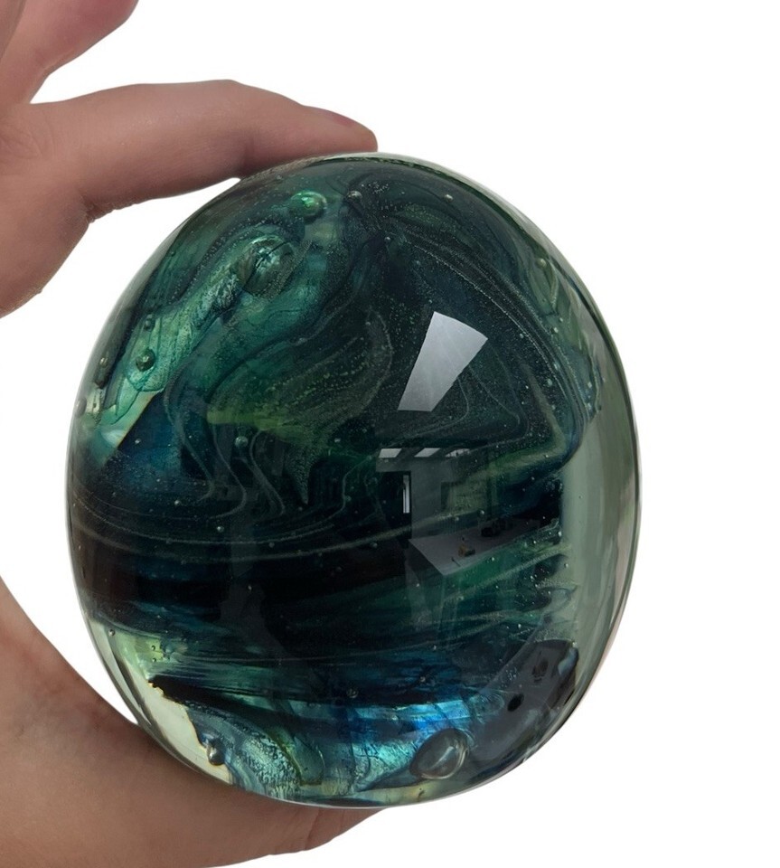 KERRY Art Glass Paperweight Green Swirl and similar items