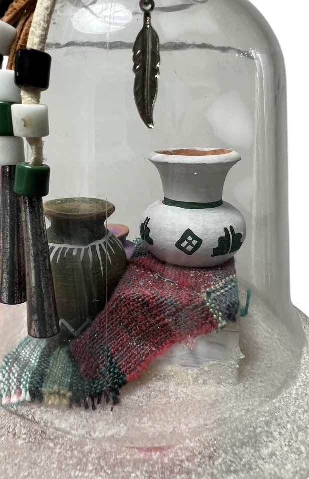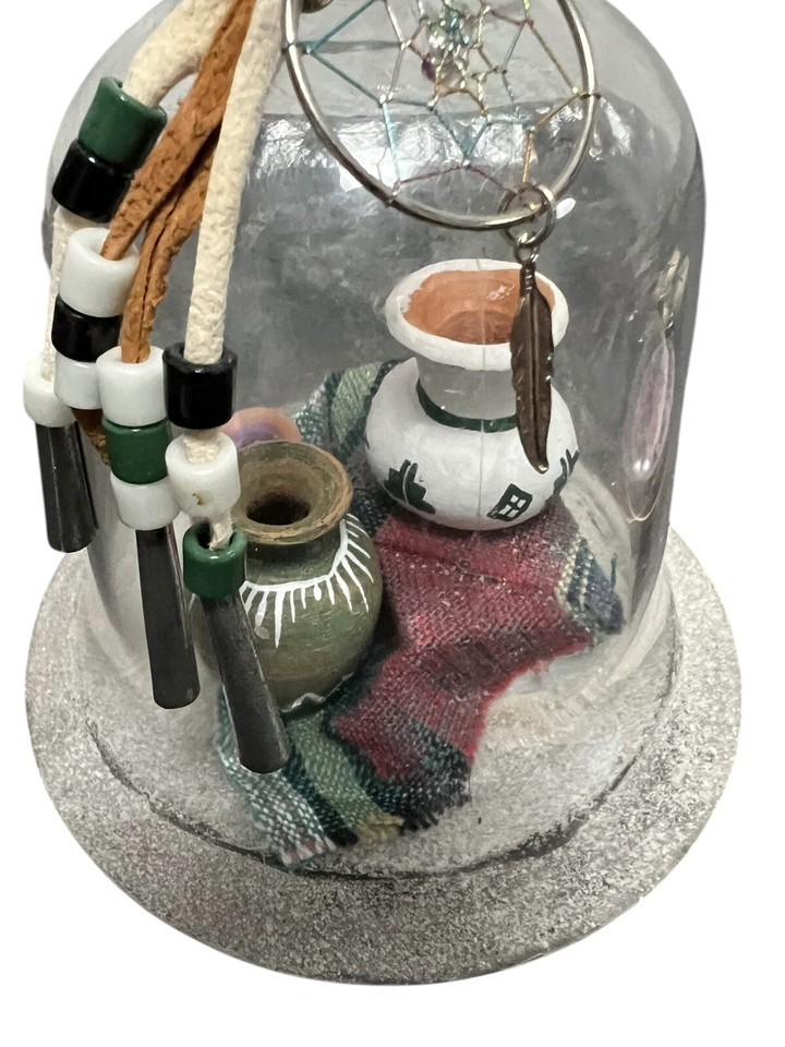 Vintage Native Clay Pot Diorama Scene Dream Catcher Dome Bell Cadillac Company